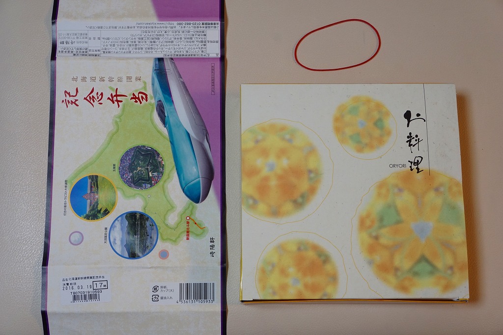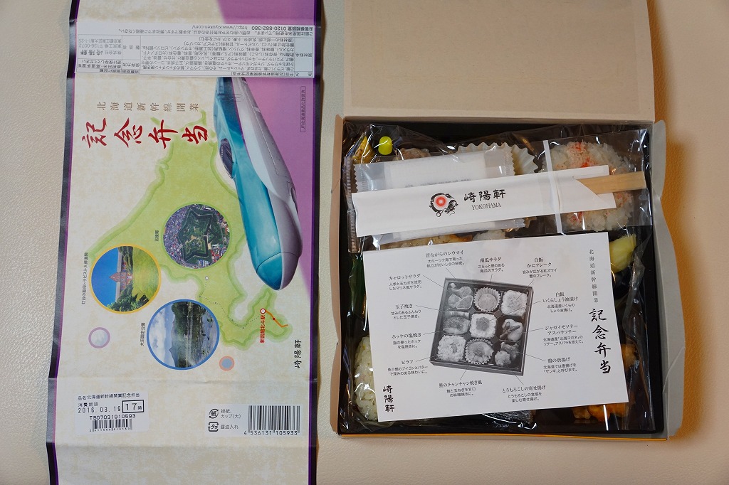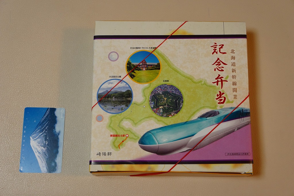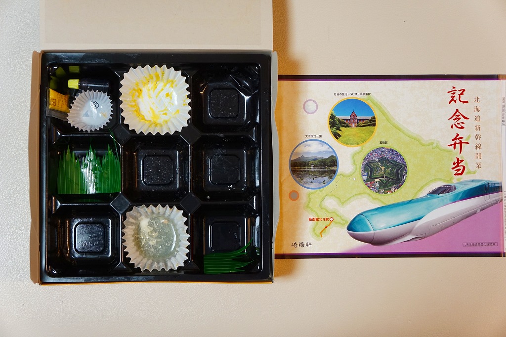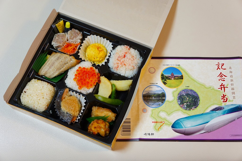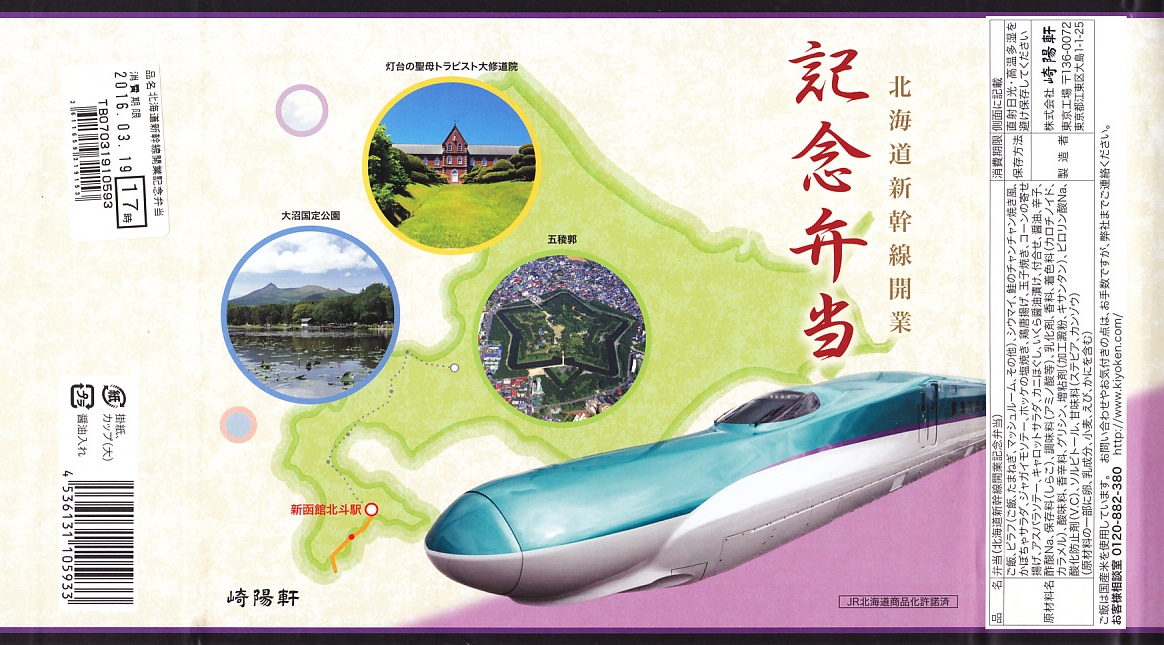 東京都内の駅弁売店「膳まい」で2016(平成28)年3月に発売か。北海道新幹線の開業にちなむ駅弁が、東京都内で数多く出現している。掛紙には北海道、H5系新幹線電車、函館付近の観光名所写真3点が使われる。