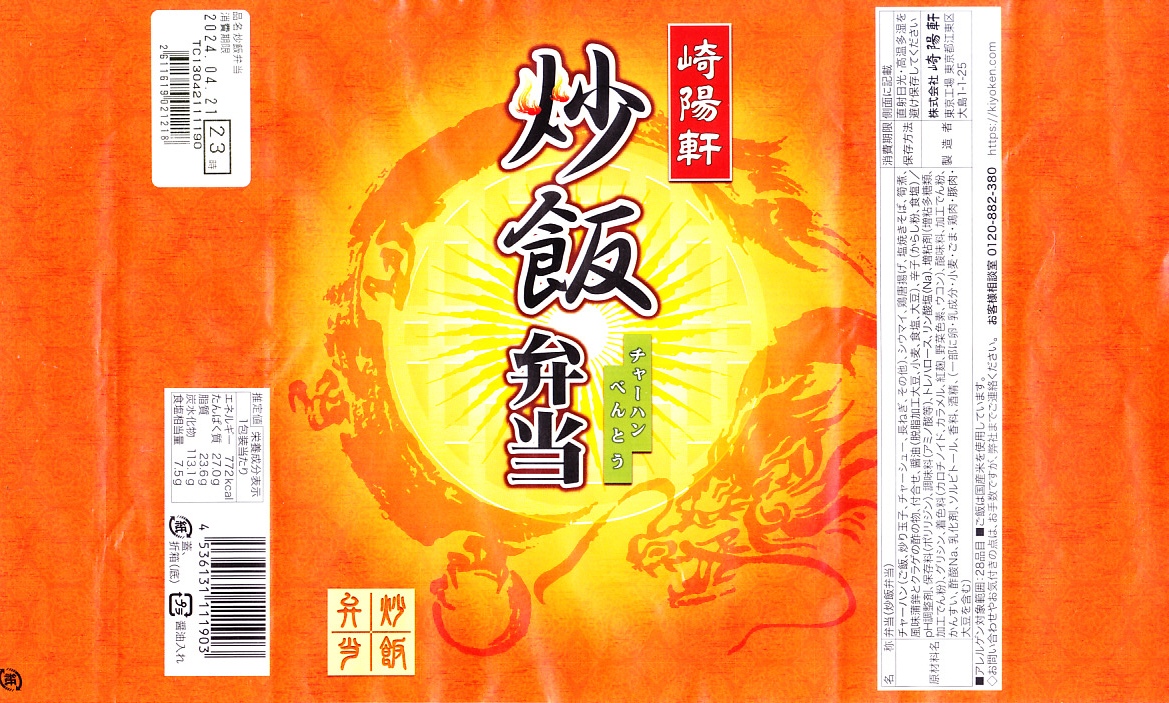 横浜駅弁の崎陽軒が東京都内で販売する炒飯弁当。東京駅や上野駅のコンコース上売店や羽田空港搭乗エリアの売店などで見掛けている。中身や価格は横浜駅弁「横濱チャーハン」と同じながら、こちらはふたが経木と掛紙ではなくボール紙とラップであるため、中身の余分な水分を吸ったり出したりしない分、御飯に余分な水気を感じ、時間が経つとふたを開けた際に水滴が垂れてきた。