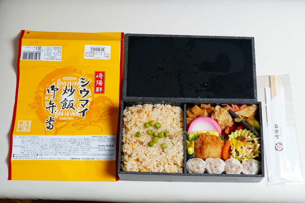 中身がとても分かりやすい中華弁当だが、見栄えと食感は横浜駅の「横濱中華弁当」や昔のNRE「東京中華」と比べてかなり落ちる感じ。崎陽軒ブランドが前面に出ないのは、ここでは幸いだったかもしれない。