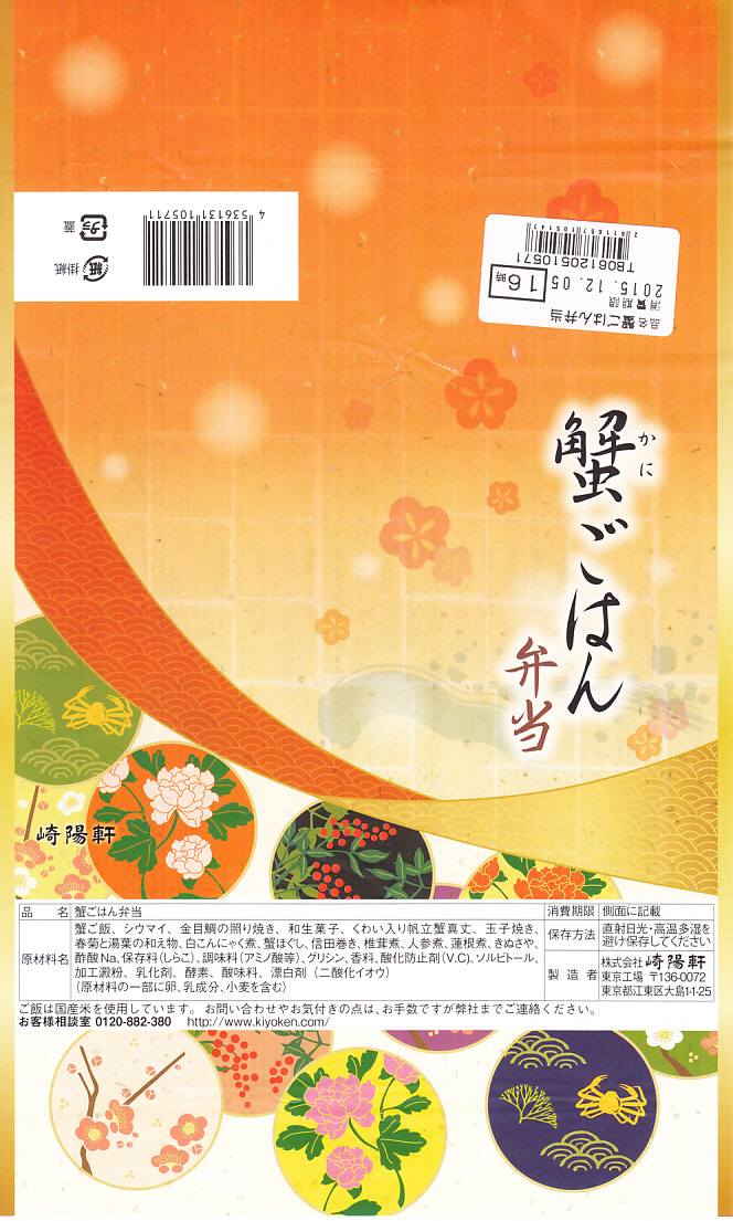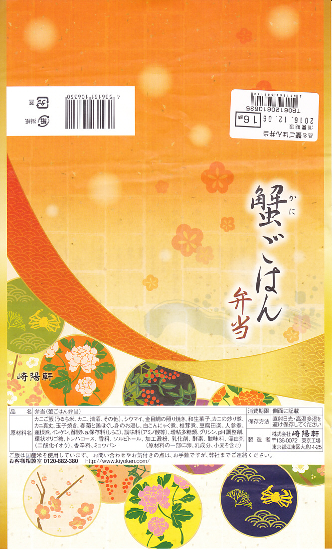 2016(平成28)年12月1日から翌年2月28日まで販売。前年と同じ名前と見栄えと価格の季節弁当で、やはり東京地区と一部横浜地区で販売。中身はカニのほぐし身を敷き詰めたカニ御飯、キンメダイ照焼、コンニャクやタケノコやシイタケなどの煮物、玉子焼、カニしんじょう、春菊と鶏のおひたし、みたらし大福、特製シウマイ1個など。