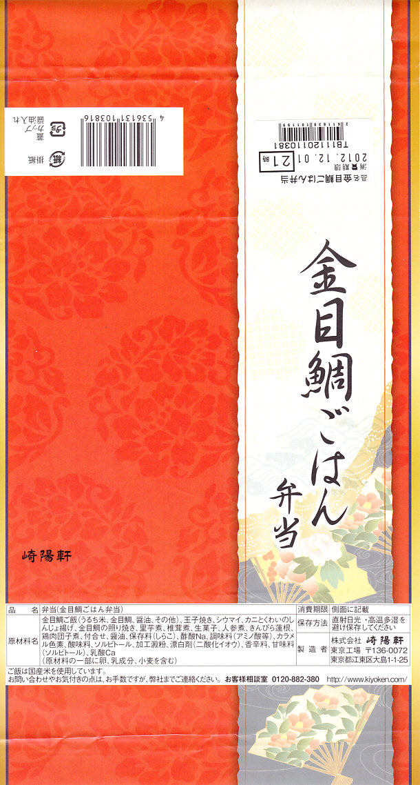 横浜駅弁「おべんとう冬」のような季節限定商品として、2012(平成24)年12月1日から翌年1月31日まで販売。通常は崎陽軒東京工場の弁当が横浜で売られることはないが、今回は東京エリアに加えて初めて、横浜駅や新横浜駅など一部の横浜エリアの売店でも販売された。