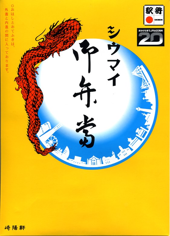 2007(平成19)年12月22日に購入した、東京版シウマイ弁当のふた。絵柄は以前や以後や横浜のものと変わらない。JR20周年のロゴマークは、当時の横浜版には付いていなかった。