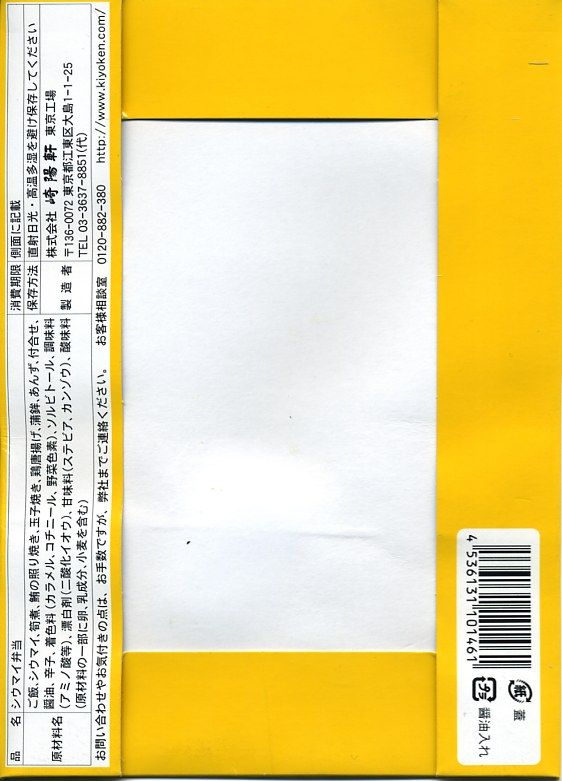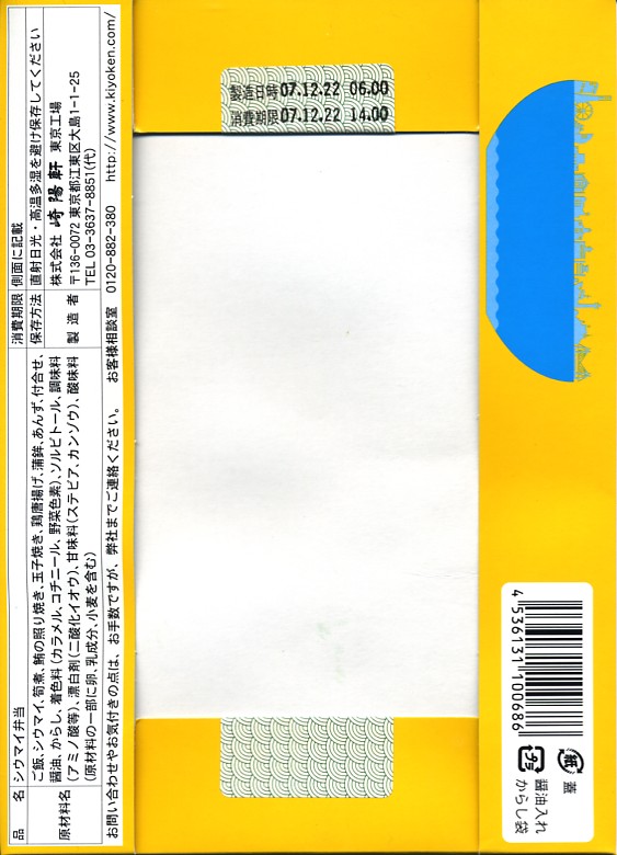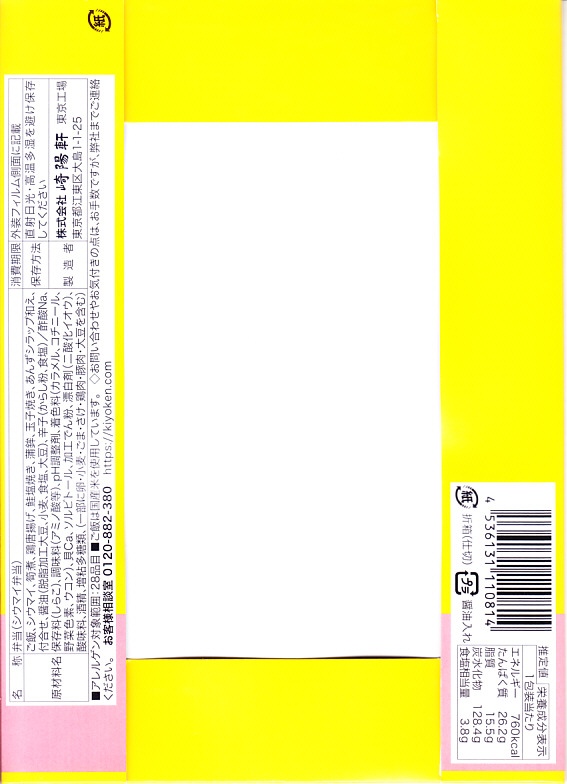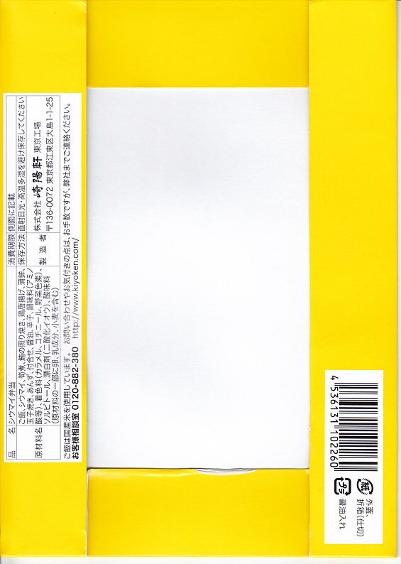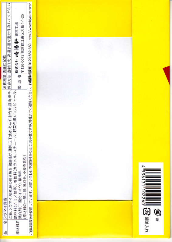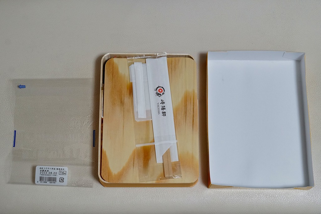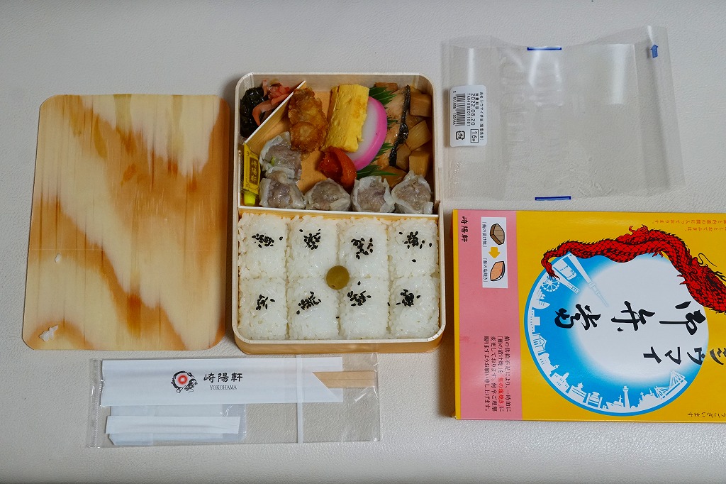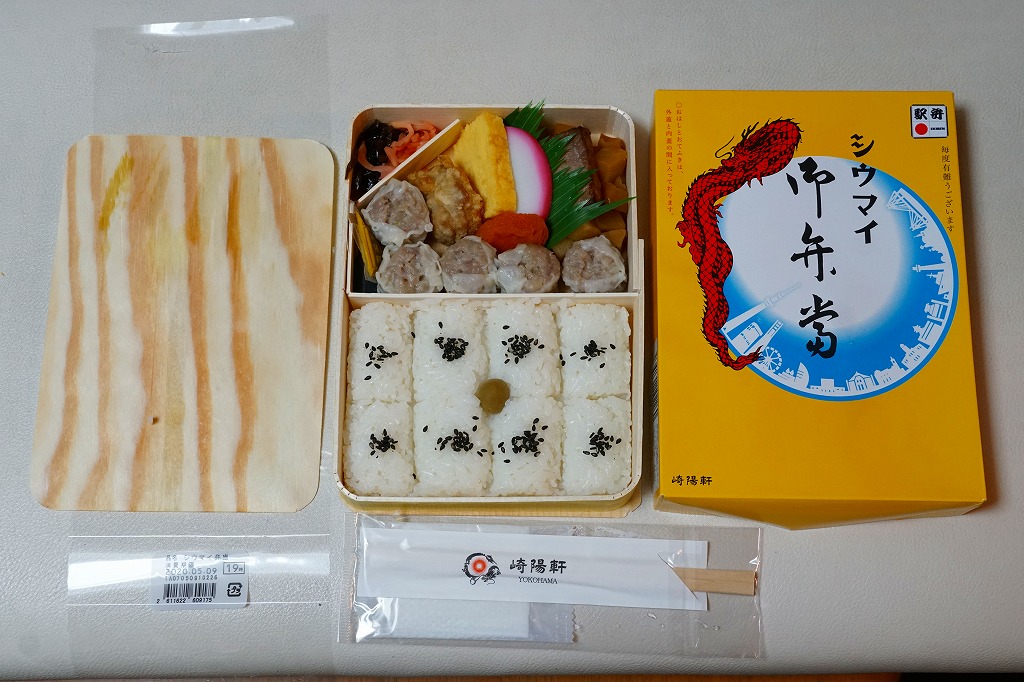 横浜エリアでも販売。東京エリアでも同じ期間と内容と価格で販売したが、こちらは普段のシウマイ弁当と同じく、包装に掛紙でなくボール紙のふたを使った。
