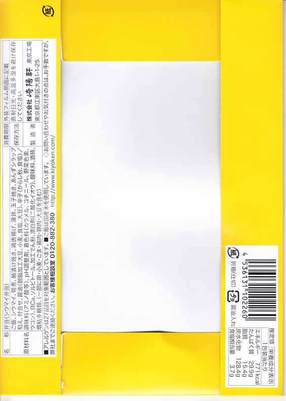 駅弁屋のお膝元である横浜では、こういう復刻版を見たことがない。横浜でやれば確実に神奈川新聞の記事になると思うが、なぜ東京だけ、しかもひっそりとやっているのだろうか。価格は2006(平成18)年の購入時で710円、現在売られれば今の値段である950円になると思う。
