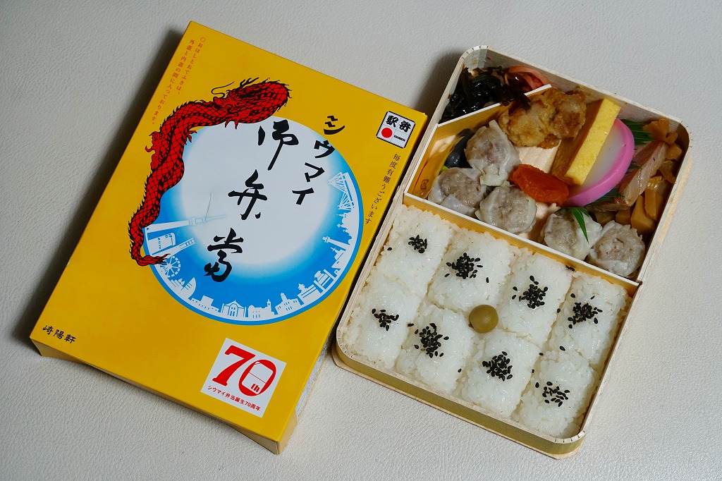 東京都内の駅でなく百貨店に入居する崎陽軒の売店で、時々売られるシウマイ弁当の復刻版。中身や価格は通常版と同じで、昭和30年代の横浜駅で使われた絵柄の掛紙を用いる。東京工場製のシウマイ弁当としては珍しく、ボール紙のふたを使うのでなく、掛紙を十字にしばるタイプ。