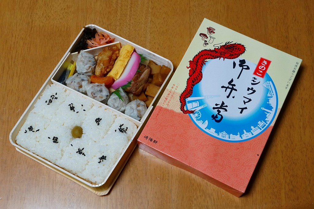 崎陽軒の「次の主役は誰だ!2020 シウマイ弁当リレー企画」による商品の第4弾として、2020(令和2)年11月1日から10日まで販売。普段のシウマイ弁当について、シウマイ5個を同じ大きさの「きのこシウマイ」に差し替えて、掛紙の絵柄を少し変えて販売した。