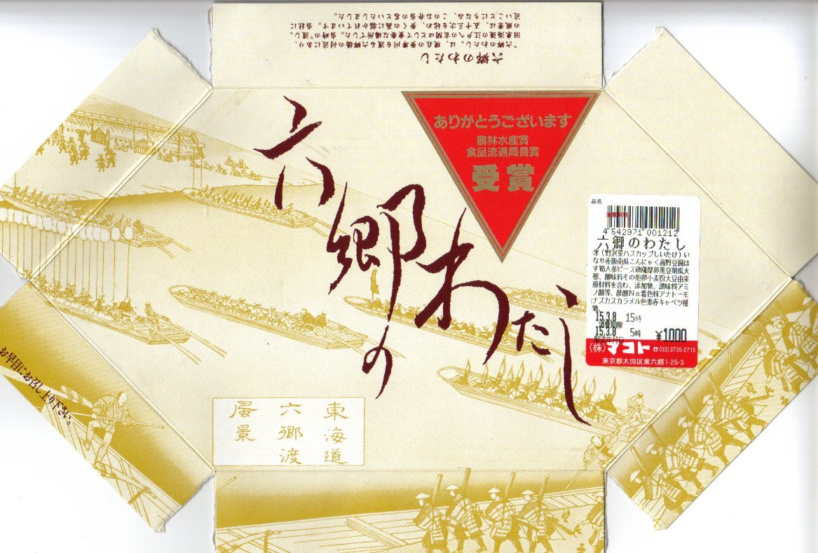 お品書きには「七つの知恵 土曜日 逆の力を知る」(購入日は土曜日)などとあり、一週間ローテーションの日替わり弁当なのかもしれない。弁当名は製造元の本社に近い多摩川の、旧東海道の渡し船から来ている。