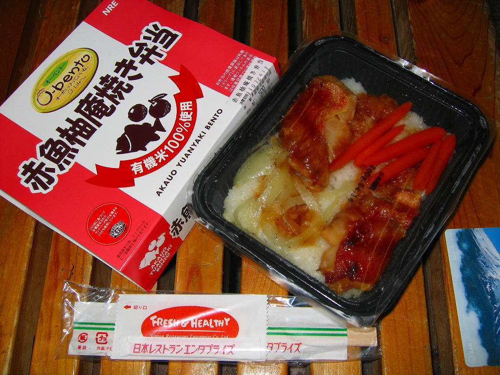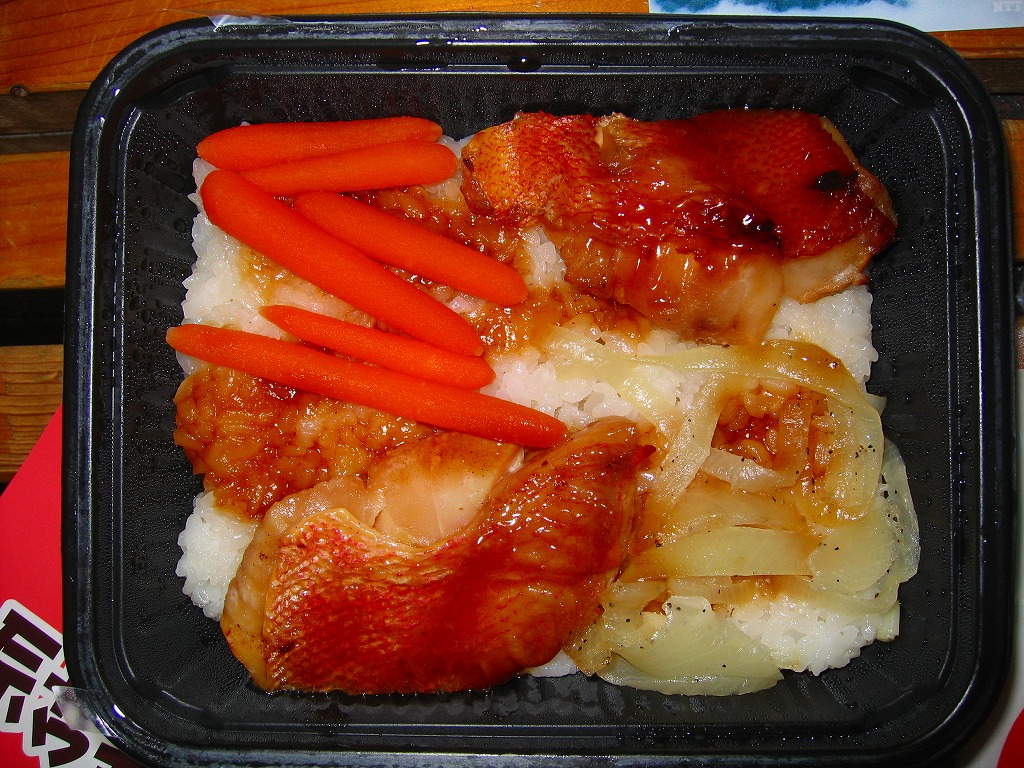 白御飯の上にタレをかけて、2切れの赤魚にニンジンとタマネギ、というかキャロットとオニオンを添える。御飯の風味は以前と同じだが焼き魚の風味は駅弁に劣らない。自宅の冷凍庫に詰めれば良い夜食になると思うが、最近は通販カタログから消えている。