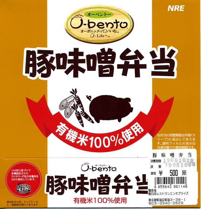 食品表示ラベルに注記が一部隠れたが、O−bentoのすべての商品には、消費期限と賞味期限で異なる日付が記される。容器の透明フィルムにある年月日は冷凍状態での賞味期限を指し、パッケージの年月日時は解凍後の消費期限を指す。2003年7月の東京都港区の保健所からの指摘を受けて、表示を明確化したもの。