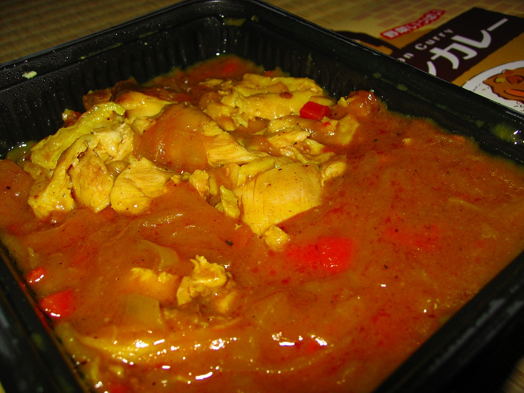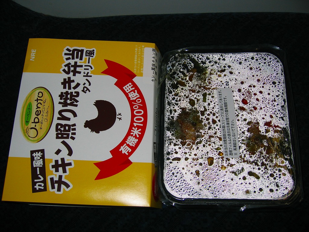 O−bento当初商品の6種類の中では一番売れ行きが悪かったようで、いつも最後まで残っているのはこれだった。O−bentoは冷凍製品を販売前にまるごと解凍するため、味はまあまあだが食感はべったりしてよろしくない。