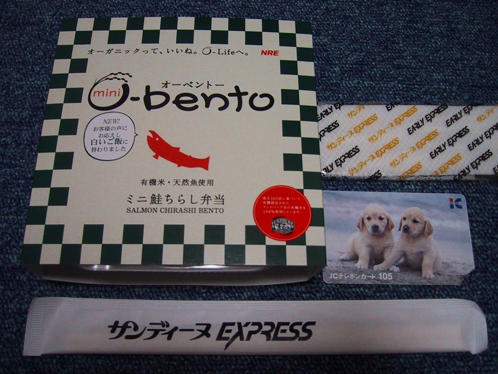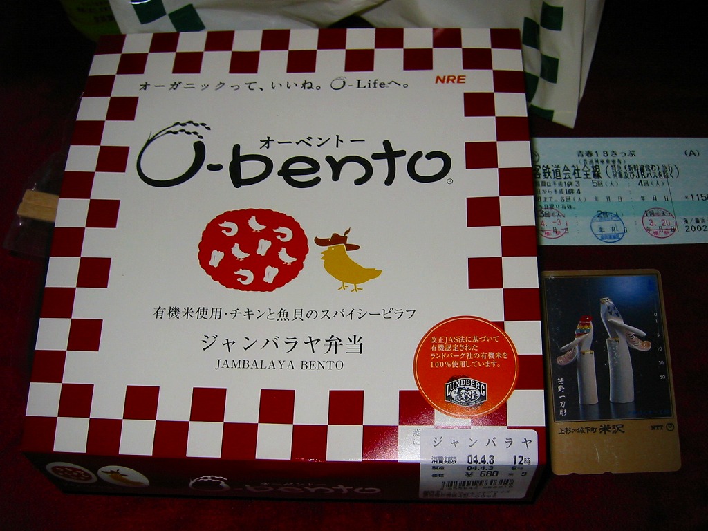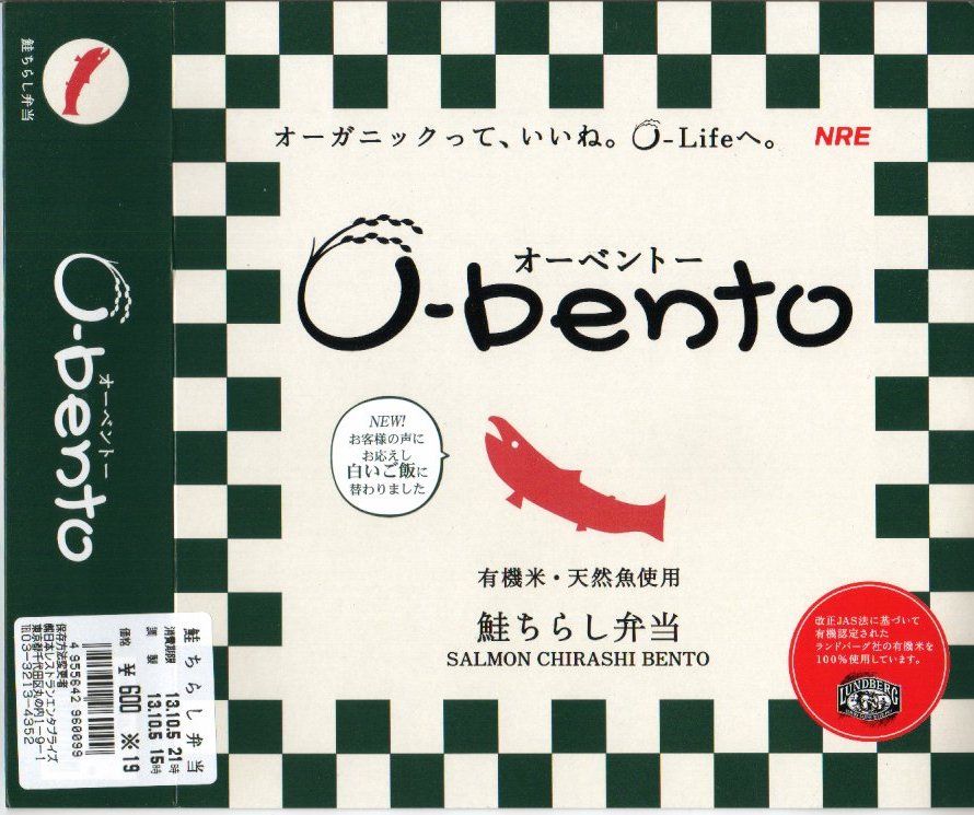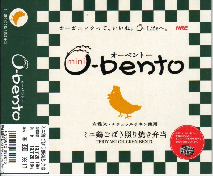 この時点でのO−bentoは「豚生姜焼き」「ピリ殻豚味噌」「マス西京焼き」「焼き鳥丼」「カレー風味チキン照り焼き」とこれの6種類。JR東日本の新幹線の一部車内でも販売されているそうで、座席で食べたら車内へ盛大に臭いを振りまきそうな気がするが、まだ目撃できていない。2007年中にシリーズそのものがなくなった。