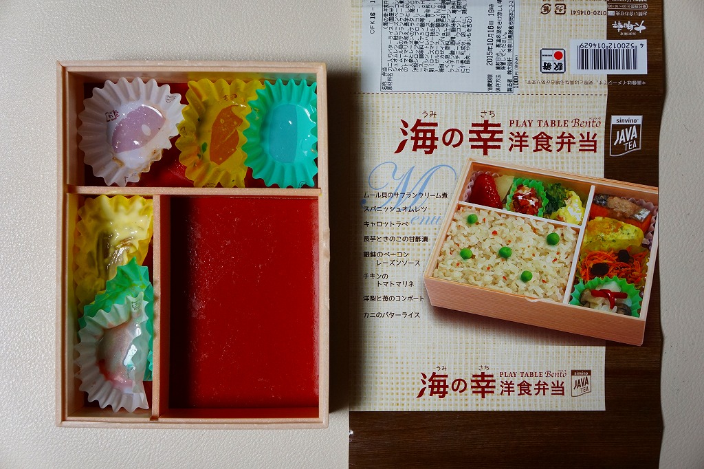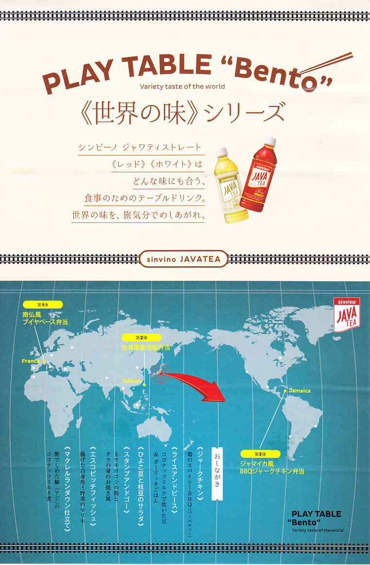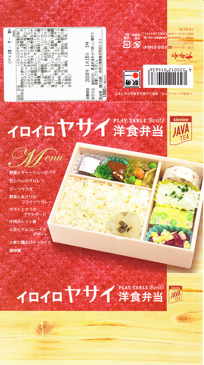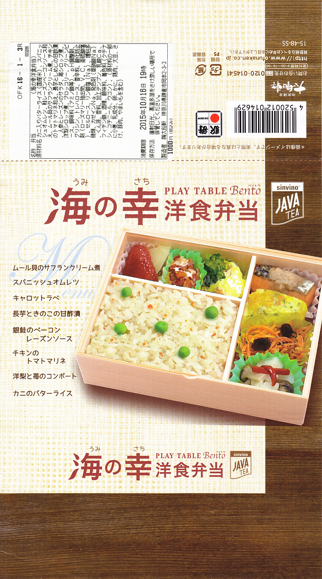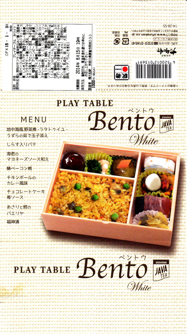 大塚食品と日本レストランエンタプライズ(NRE)と大船軒とのコラボレーション駅弁「PLAY TABLE Bento」の第2弾、3種類目として、2015(平成27)年10月10日から東京・上野・新宿・大宮駅のNRE駅弁売店で12,000個を販売。今回も大塚食品の無糖紅茶「シンビーノ ジャワティストレート」とのセット販売で、中身もこのペットボトル売り飲料と合うものにしたという。