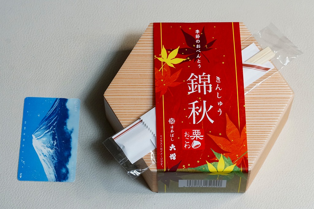 2021(令和3)年から東京駅などで売られる、9月から11月まで販売される秋の駅弁の、2024年版。10月のJR東日本の駅弁キャンペーン「駅弁味の陣2024」にエントリー。「日本ばし大増」ブランドの商品として、東京都内などのデパートの地下食品売り場でも買えると思う。