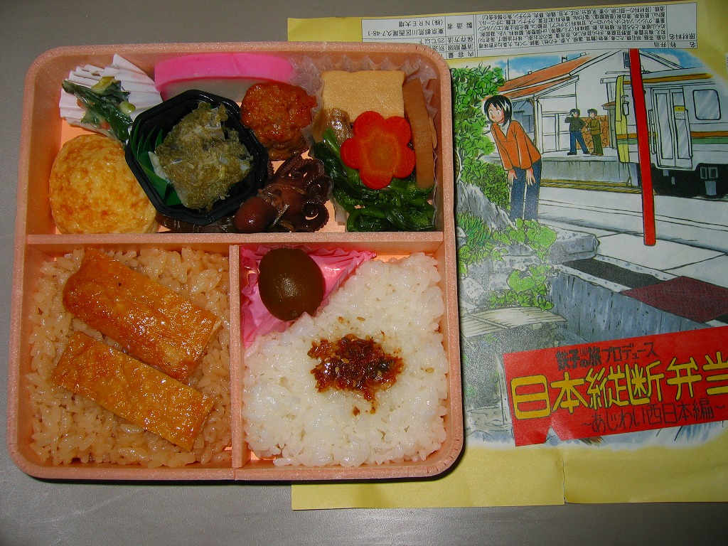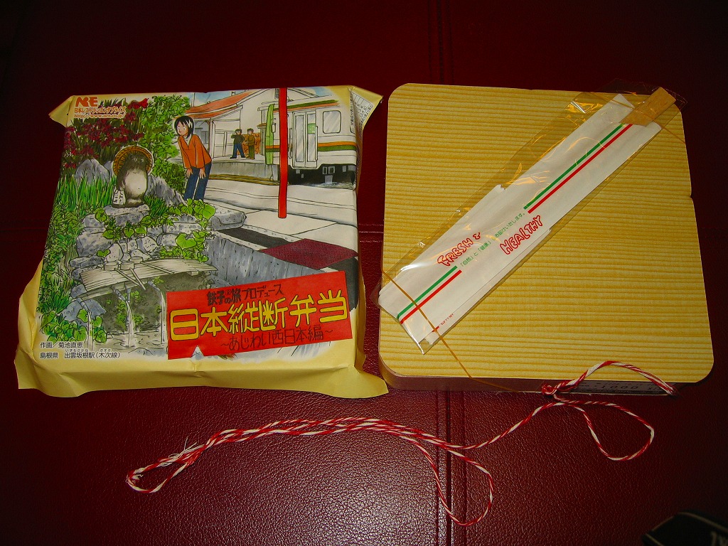漫画「鉄子の旅」の著者である菊池直恵がプロデュースした駅弁の第4弾で、2008(平成20)年10月12日に東海編から切り替え。今回は西日本、詳しく書けばJR西日本エリアを題材とした。ふたと枠に経木を使う正方形の容器に、島根県・木次(きすき)線出雲坂根駅のイラストを漫画家自身が描いた掛紙をかける。