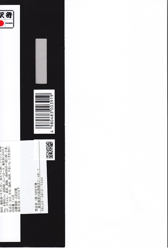 ボール紙製容器に白いトレーを突っ込み、御飯の上に鶏と卵のそぼろと鶏照焼にタケノコや椎茸などを無造作に置き、きんぴらごぼうなどを添える、いかにも工場製品という印象の弁当。味は悪くないだけに、丁寧に作れば印象も変わるだろうが、すると値段が許さないかもしれない。消費期限が分単位まで表示されるのもNREの弁当の特徴。2013年時点で上記の「鳥めし」にリニューアル。