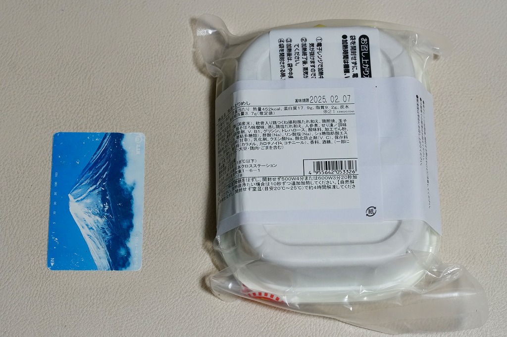 発売当時は長円形の木質エコ容器に、2024年時点で写真のような白く平たいプラ製トレーに、鶏だしご飯を敷き、鶏そぼろ、鶏照焼、鶏つくね、蒸し鶏、玉子焼、かまぼこ、れんこんきんぴら、にんじん、せりで覆い、まるごと冷凍し、透明な袋に密封し、東京駅弁のとりめしと同じ絵柄の紙帯を締める。指示どおり電子レンジで加熱すれば、東京駅弁のとりめしに似て非なるような味が、温かく少しだけいただける。駅弁の雰囲気が感じられるかは、人それぞれ。