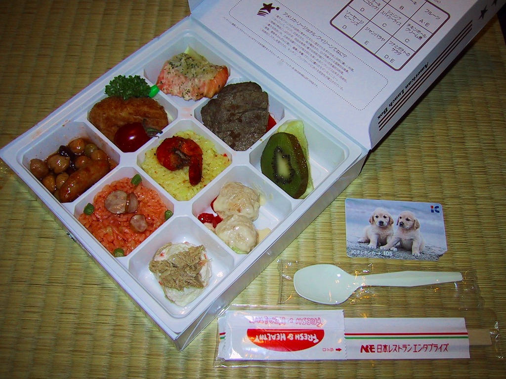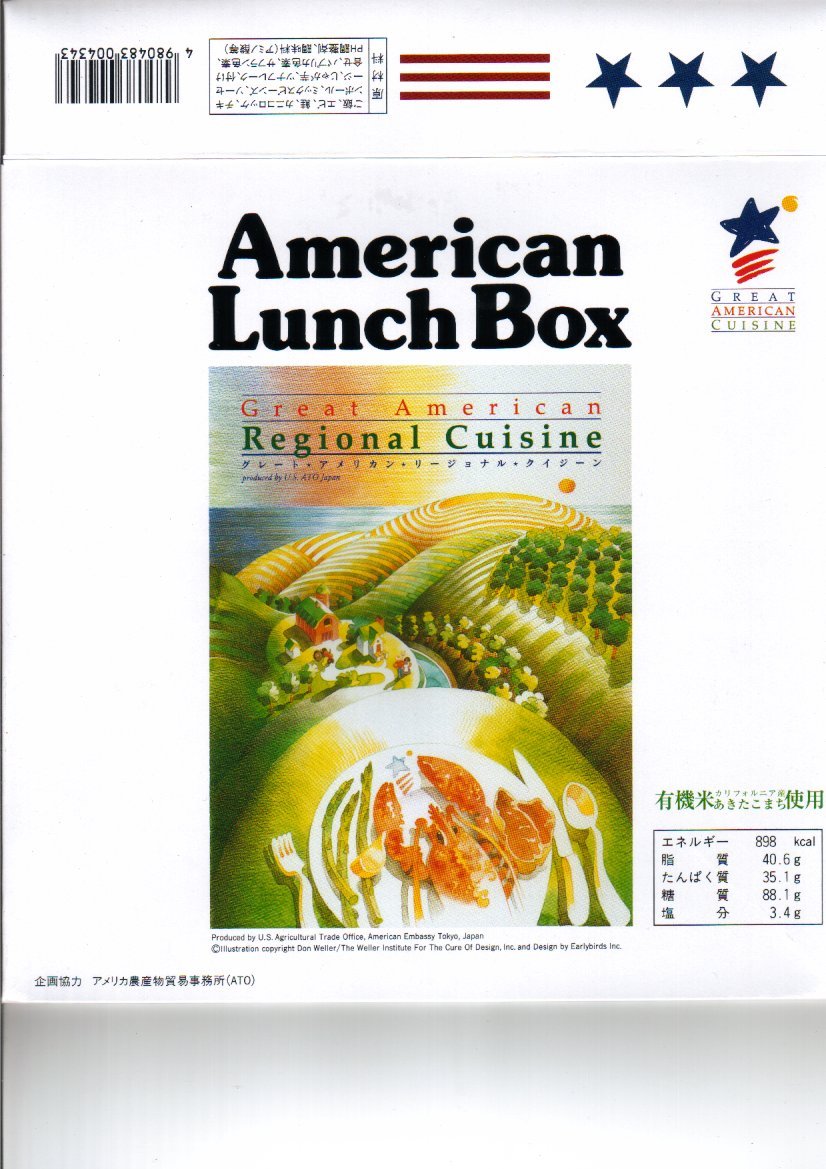 海外の食材や料理が大好きなNRE(旧・日本食堂)が初めて出した、アメリカ農産物貿易事務所の企画協力による輸入食材をふんだんに使用した駅弁。正方形の大きなボール紙の容器の中にはプラスティックのトレーが入り、その9分割された区画にサーモンやチキンボールやビーフステーキにジャンバラヤやサフランライスやポテトサラダなどが入るランチボックス。全体的にアメリカンな大味ではあるが、街の洋風弁当には負けない上質な素材と味が楽しめると思う。量もなかなか多い。現存はしない模様。