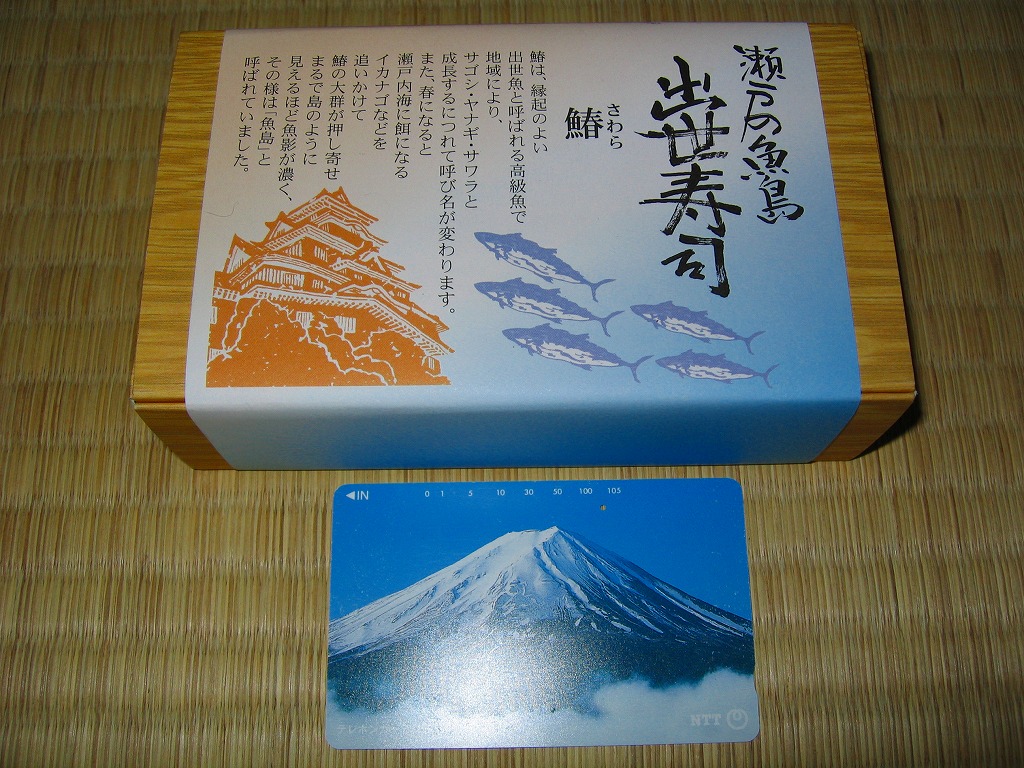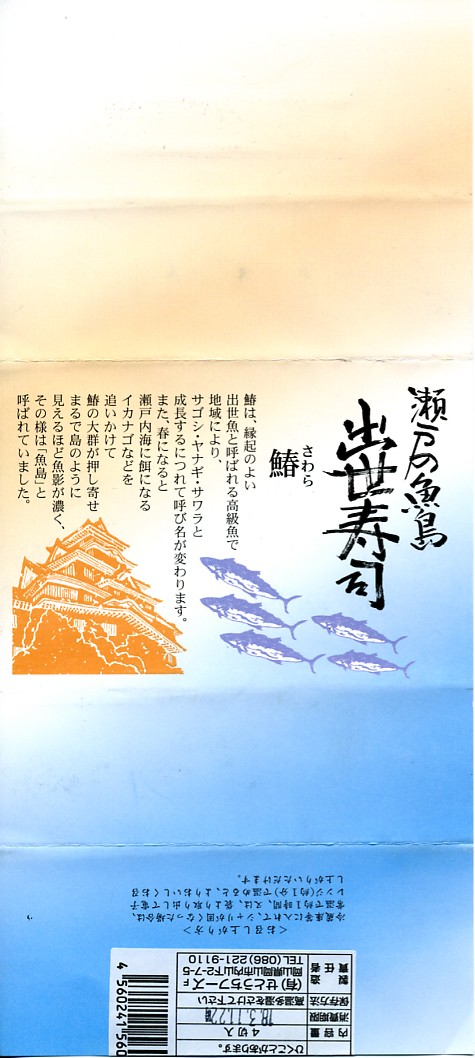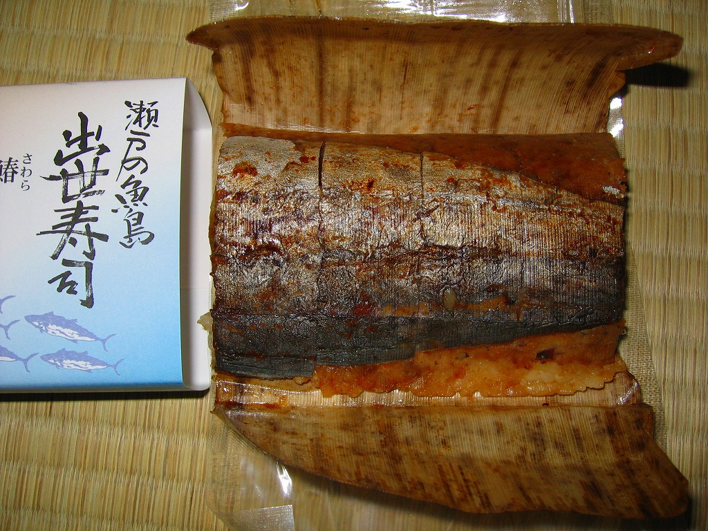 2006(平成18)年の初頭頃の発売か。紙箱の中に固く硬く真空パックされて金沢駅のお贄寿しのように固まったた小さなサワラ棒寿司が入り、小さな掛紙を巻いてセロテープで留める。風味は普通。