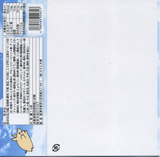 東京駅などNREの駅弁売店で売っているようなので、とりあえず東京駅弁としておくが、製造責任者は岡山県名義、収穫報告は東京駅や羽田空港に瀬戸内海各地その他という、所属不明な商品。2014年頃までの販売か。