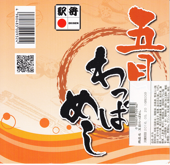 2016(平成28)年5月20日に購入した、東京駅弁のパッケージ。容器も中身も価格も、上記の2013年のものと同じ。違いはQRコードの有無だけ。