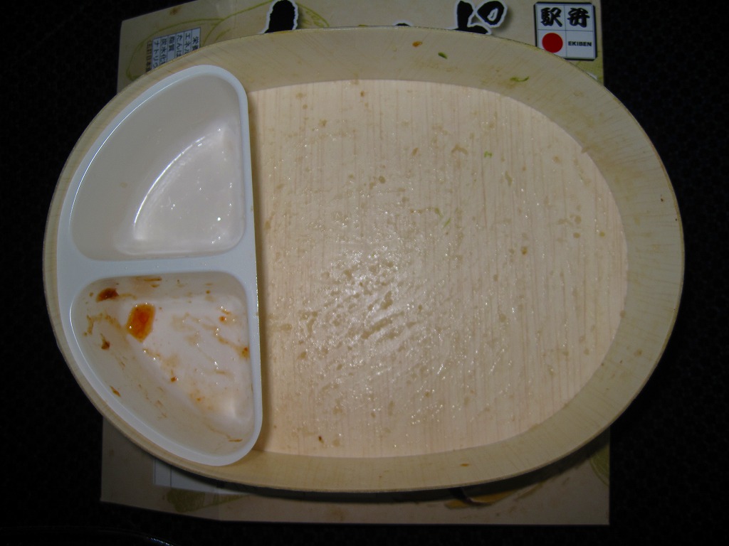 中身の食材は少々入れ替わったが、中身の味や感じは変わらない。容器が以前の味気ないプラ製トレーから「エコウッド容器」なる木製に替わり、しかも付合せを除き御飯を直に容器へ詰めているため、駅弁としての雰囲気が格段に向上したと思う。値段も20円ほど上がったが、気が付いたら東京の駅弁はおしなべて1,300円になってしまったため、安くはないが比較上の割安感がある。