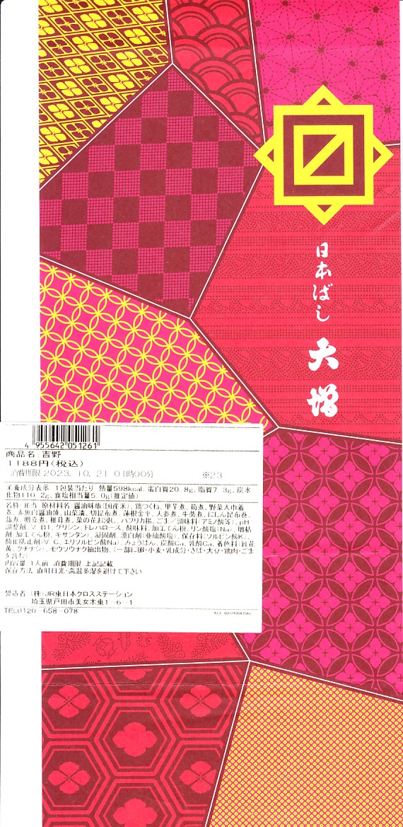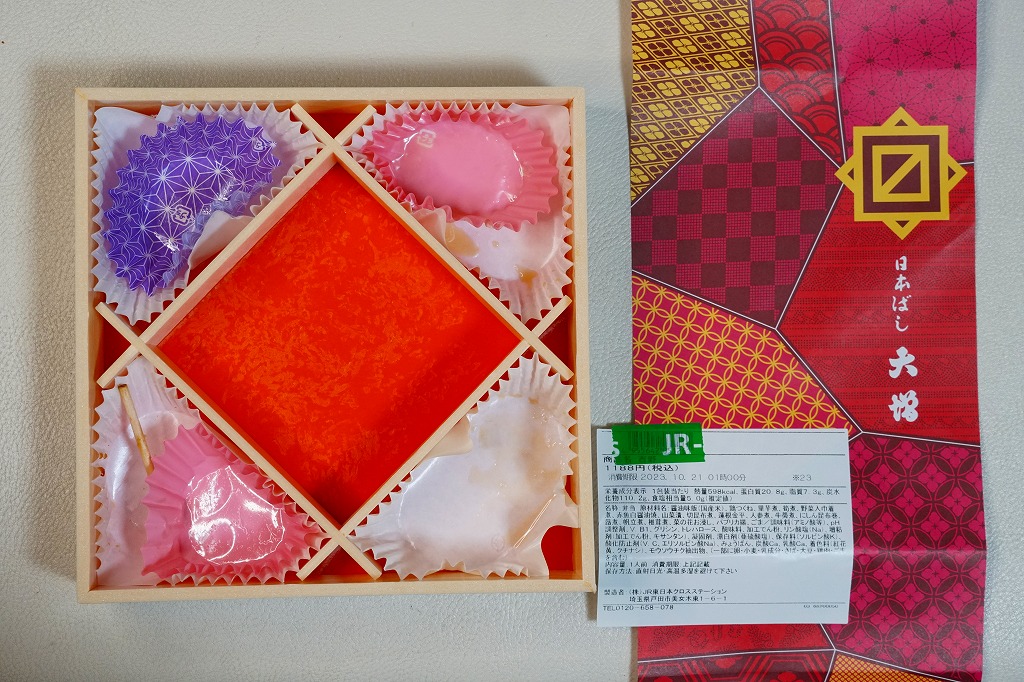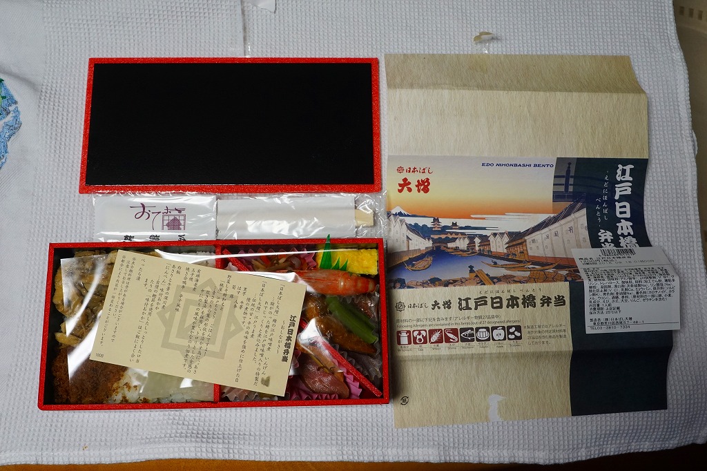 東京駅の駅弁売店「駅弁屋 祭」で買えたお弁当。本来は「日本ばし大増」ブランドの仕出し弁当で、団体注文かデパ地下の店舗で売られる商品であるが、その商品群は少なくとも20年くらい前から、かつての日本食堂、現在のJR東日本クロスステーションの駅弁売店に出てきたり、鉄道イベントで売られることがある。合併により製造も販売もすべて2023年4月にJR東日本クロスステーションとなっており、よりボーダレスに駅の内外で売られるようになるのだろう。