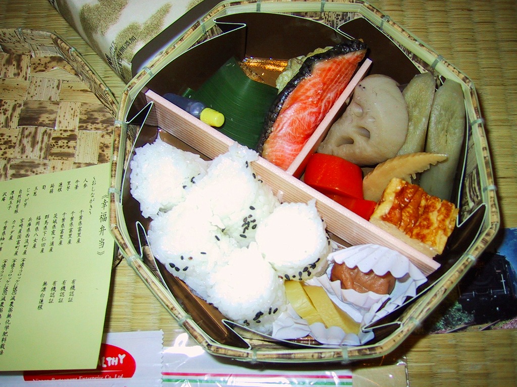 有機・自然のものをできるだけ取り入れた食材はお品書きで紹介する。味も風味も、個々の食材の美しさや全体のレイアウトも申し分なし。財布を気にしなければ駅弁の名前どおり幸福な気分でいただける駅弁で、東京の駅弁は1,300円以上払えば美味いものが手に入るようだ。