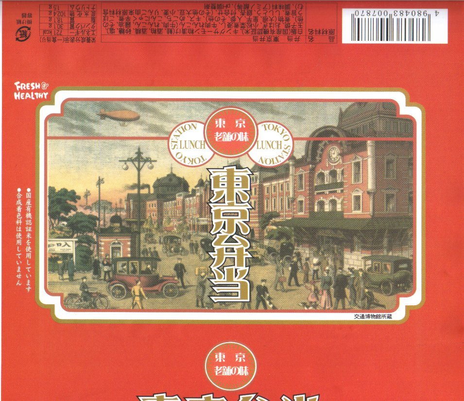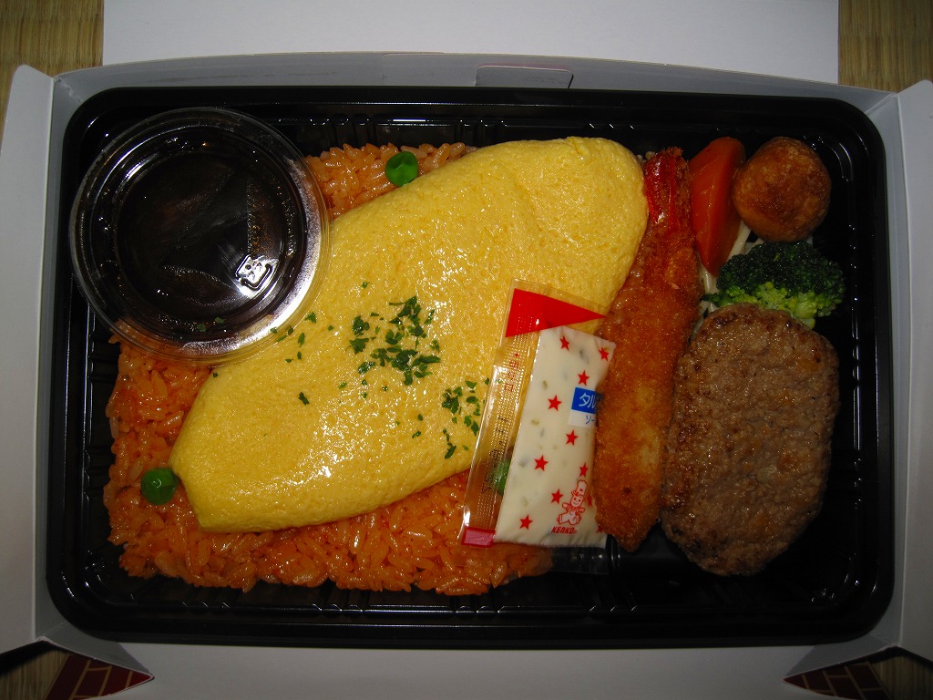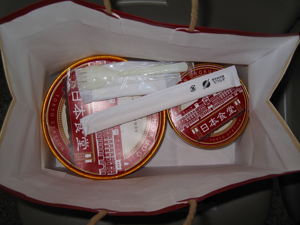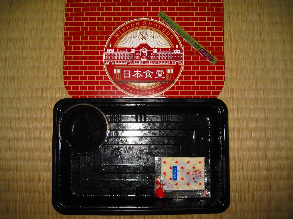 東北新幹線新青森開業に合わせて2010(平成22)年12月4日に開業した、東京駅構内食品街「グランスタダイニング」内のレストラン「日本食堂」で販売された洋食弁当。赤レンガ柄のボール紙製容器を使用、黒いプラ製トレーに収まる中身は、チキンライスにオムレツを載せ、ハンバーグ、エビフライとタルタルソース、パスタとニンジンとジャガイモとブロッコリー、デミグラスソースを添えるもの。和風洋食が完璧に体現されているうえ、冷めても食べられる味に仕上がっている。高価だが東京の味として、食べて旅の記念になる。駅構内工事を理由に食品街の全店舗が閉店したため、2016(平成28)年2月限りで終売。