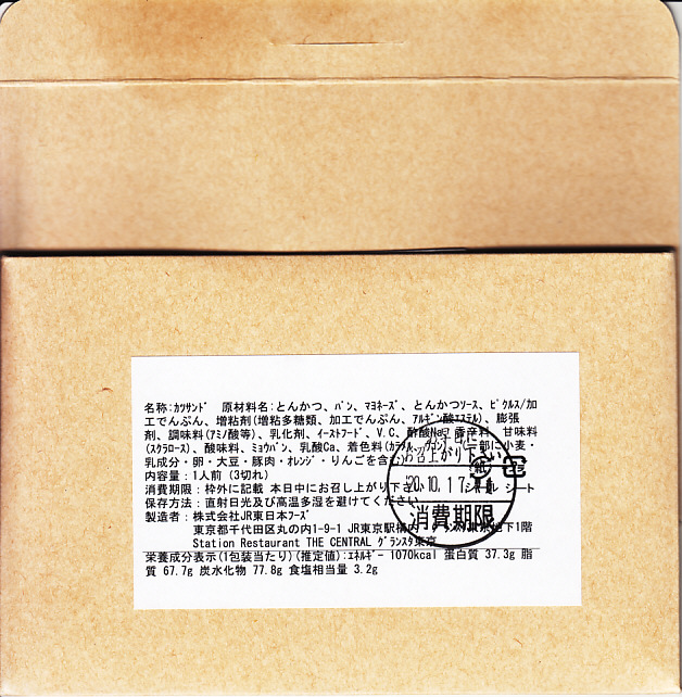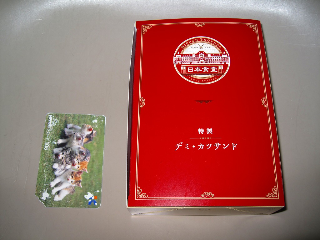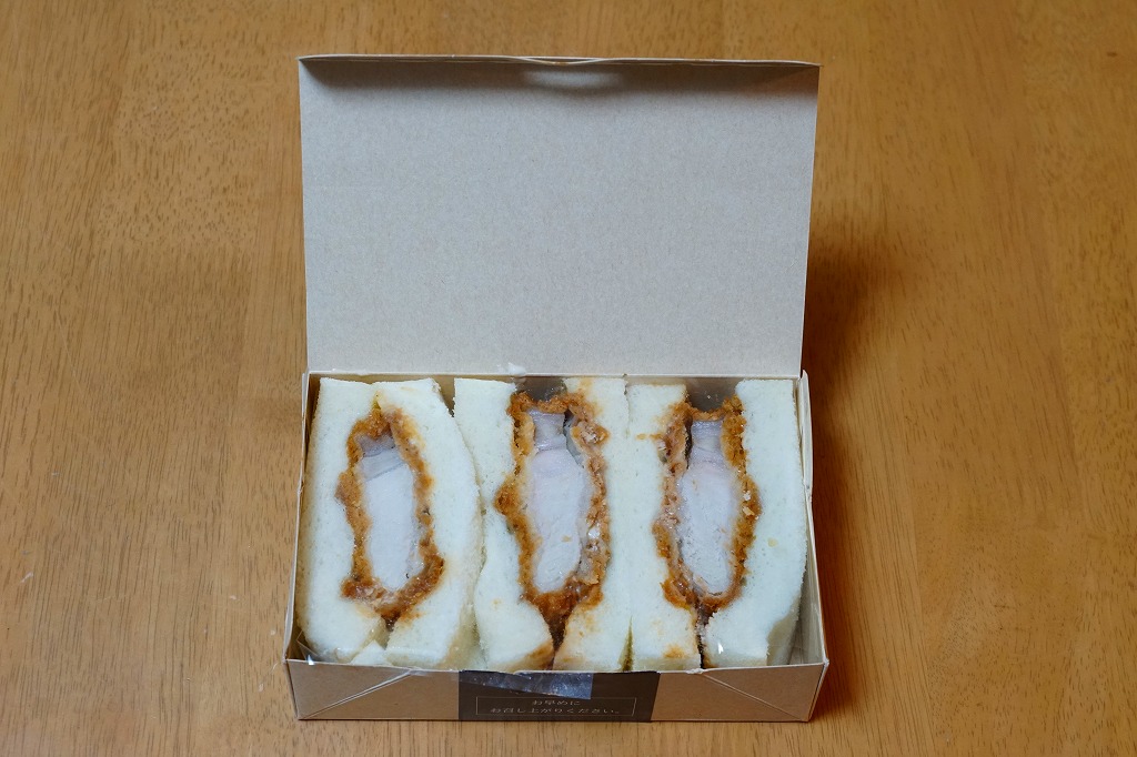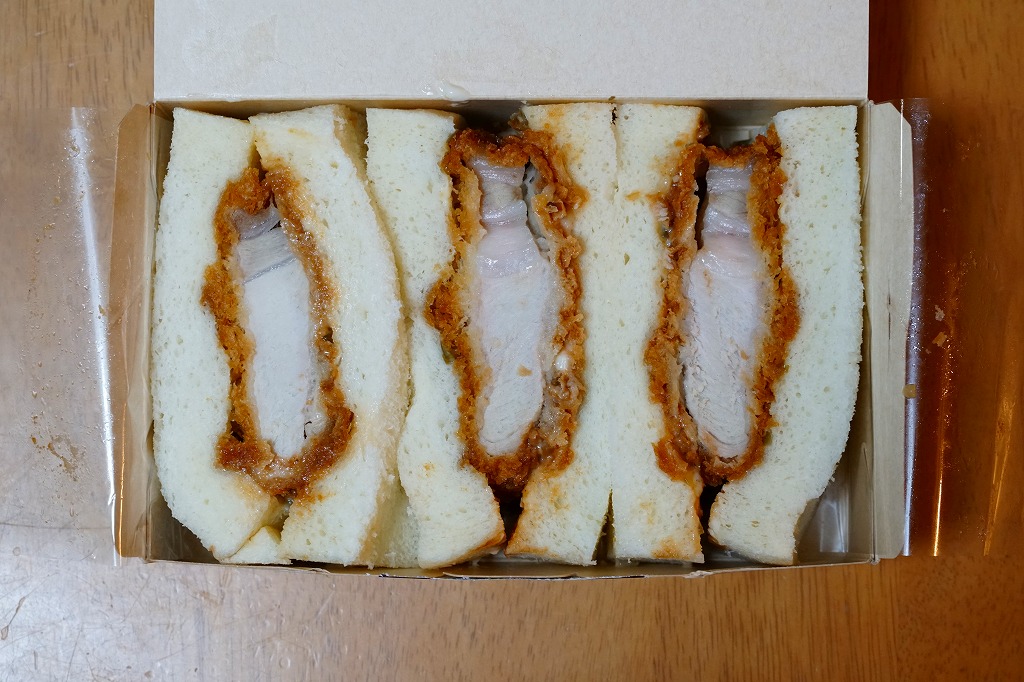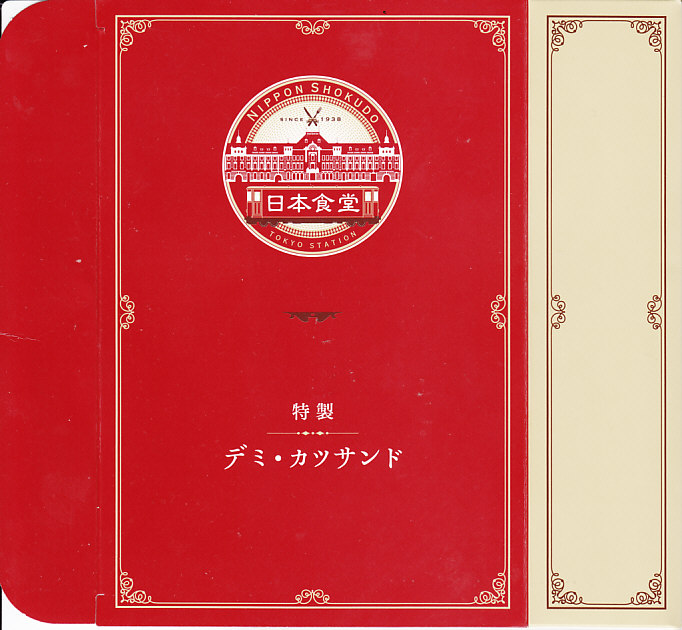 無地の茶色い紙箱に、ロースカツのソース漬けを、マヨネーズを塗った耳なし食パンで挟んで3切れを詰め、店名のシールで留める。中身や味も値段もやはり、過去に閉店した日本食堂で買えた「特製デミ・カツサンド」にそっくり。当時の日本レストランエンタプライズは、2020年4月のJR東日本の子会社再編でJR東日本フーズとなり、このレストランを運営する。