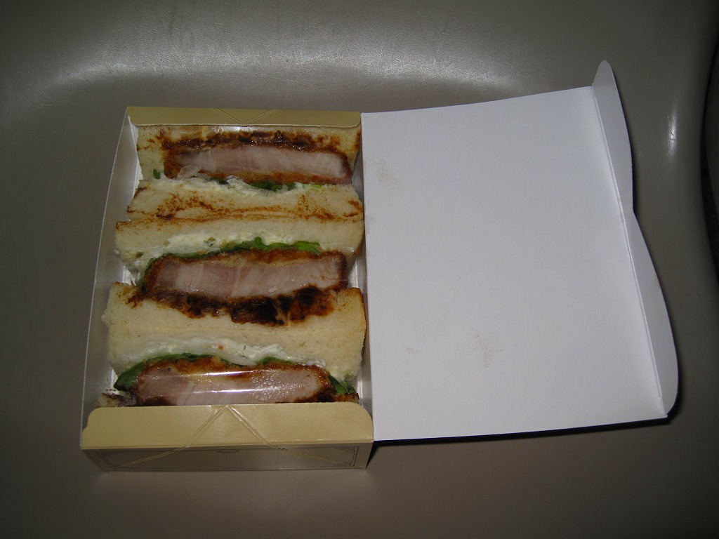値段は同駅構内「駅弁屋旨囲門」のカツサンドの倍は取るが、赤身と脂身が程良く柔らかいザクッとした歯応えのカツには、それだけの高級感を備えている。ソースの油は見た目も味でもややくどいが、こういう味があってもよい。レストランではドリンク付き1,200円でメニューに載っている。駅構内工事を理由に食品街の全店舗が閉店したため、2016(平成28)年2月限りで終売。