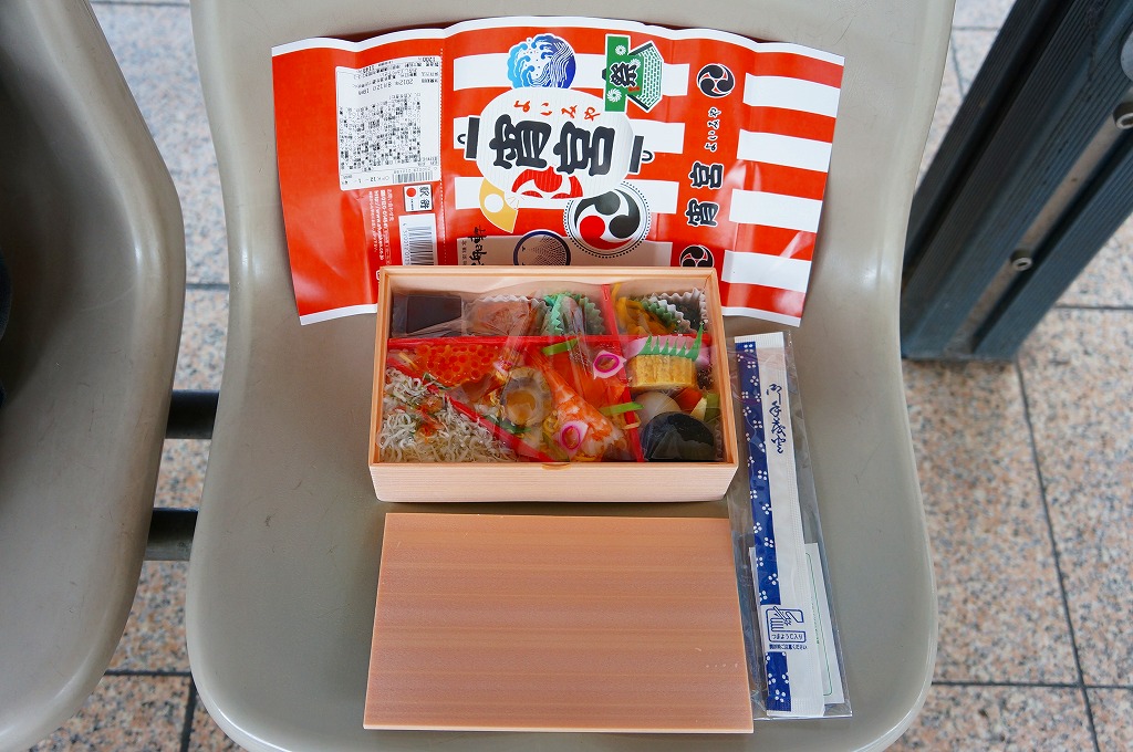 東京駅の駅弁売店「駅弁屋 祭」のオープニングイベントとして、2012(平成24)年8月9日から19日まで同売店で開催された駅弁大会で販売された記念商品。調製元は大船駅の駅弁屋であり、今はNREの1ブランドでもある大船軒。中身はエビやホタテやサーモンなどのちらしずし、しらす丼、アジの酢締めとキンメダイ照焼、かまぼこと玉子焼、サトイモやシイタケなどの煮物、ようかんなど。大船駅弁の食材とNREの見栄えや調理がうまくミックスされていた。