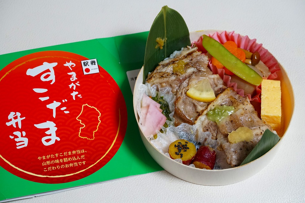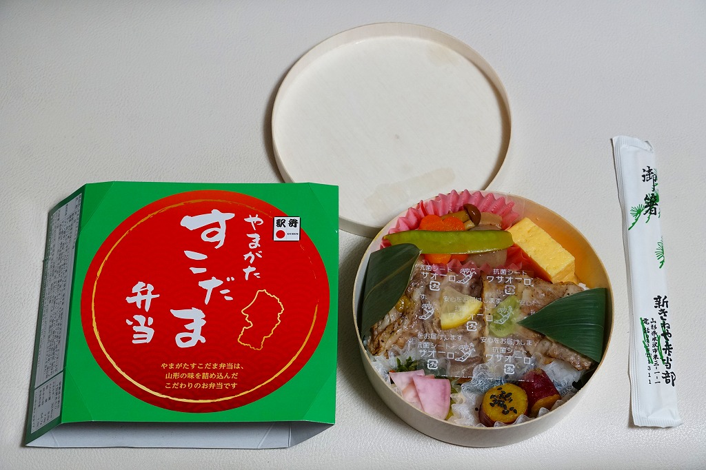 常温できれいな味と形を保ち、とても良い雰囲気。山形米「つや姫」の駅弁はNREも出したり、自宅でも炊いているが、山形県の駅弁屋が作るほうが、断然に香りが活きると思った。東京での販売は2019年までか。