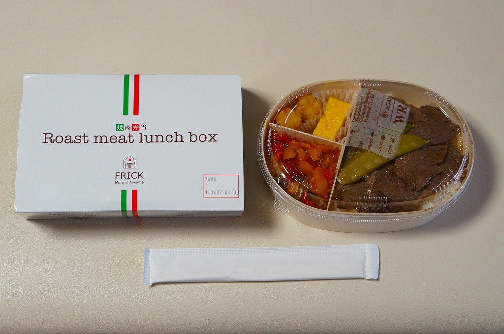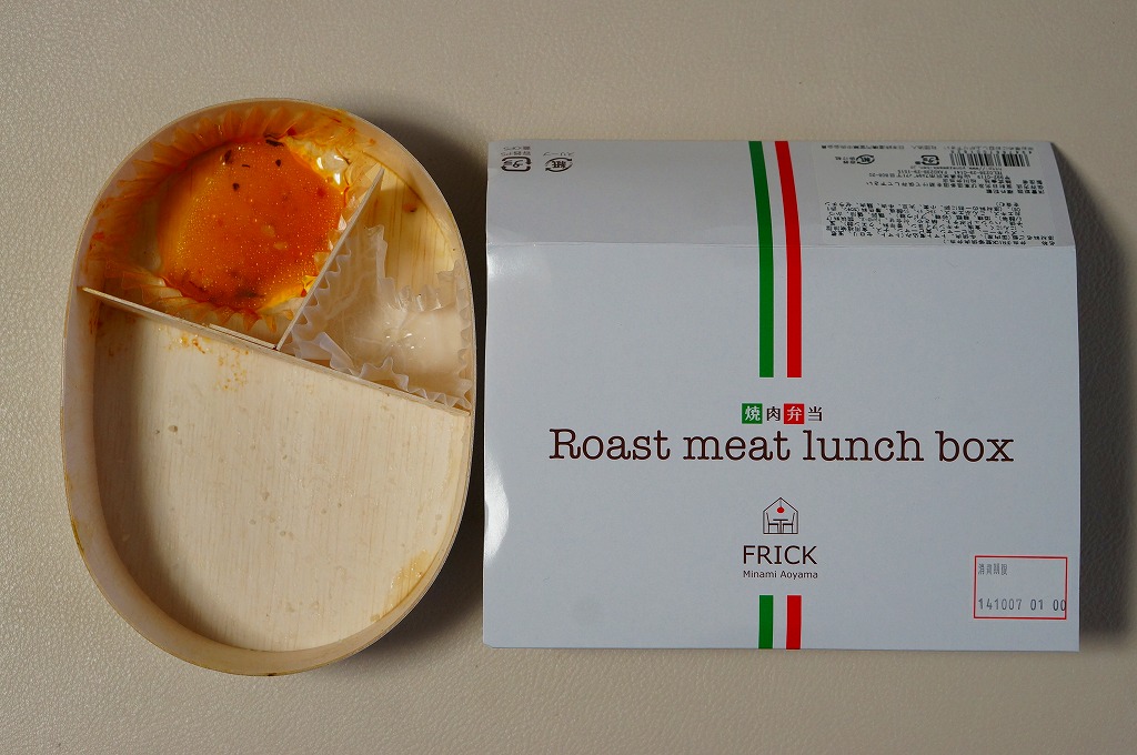 2013(平成25)年頃の発売か。東京都・南青山のイタリアンレストラン「FRICK」を名乗るお弁当で、調製元はなぜか山形県は米沢駅の駅弁屋。楕円形の木製エコ容器に、白御飯を詰め、牛焼肉で覆い、煮玉子とピーマンやズッキーニなどのトマト煮込みを添える。とってもおしゃれなランチボックスになっていた。2015年頃までの販売か。