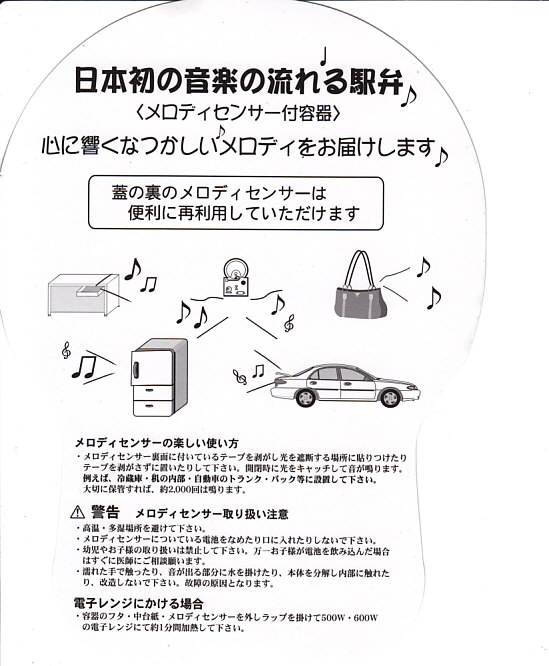 2013(平成25)年7月12日に購入した、東京駅弁のスリーブ。注意書きの多さを除き、上記の2018年のものと基本的には変わらない。容器や中身や味も同じ。