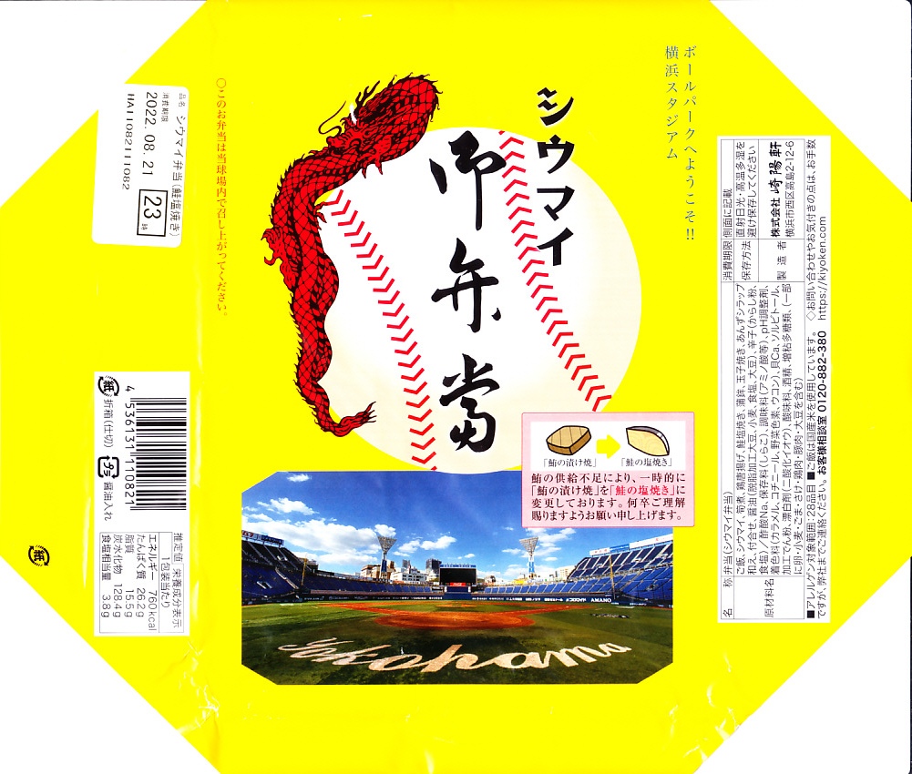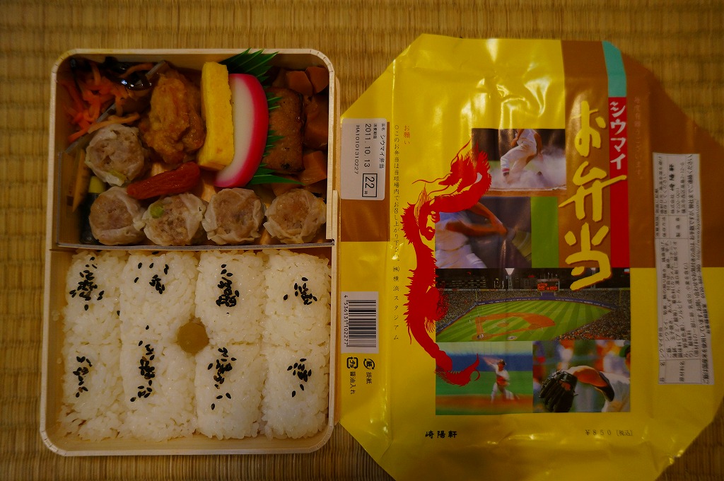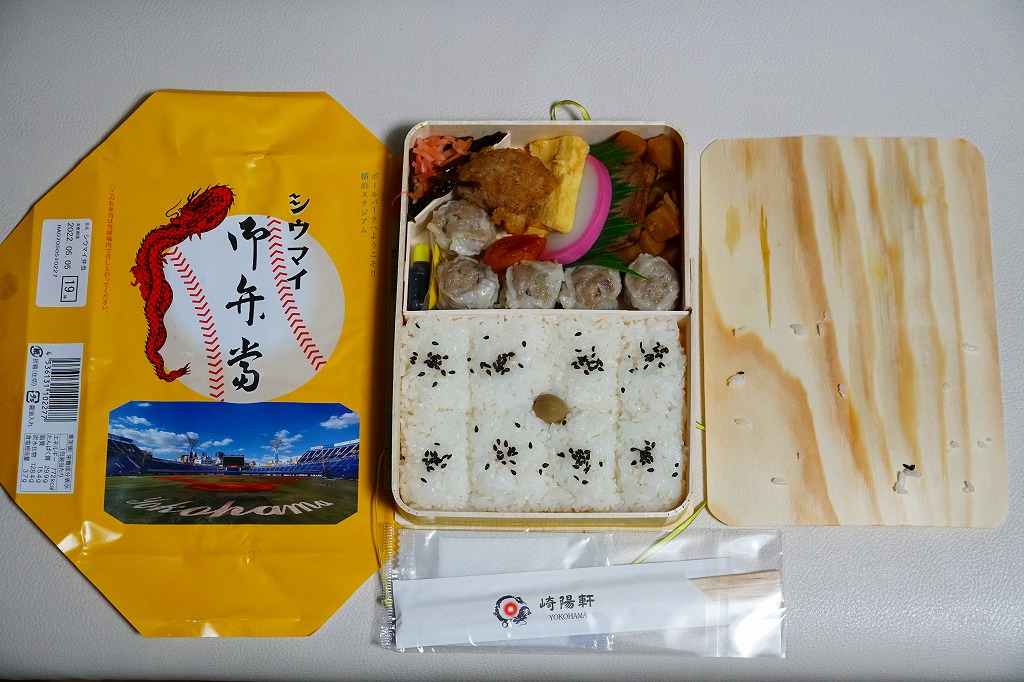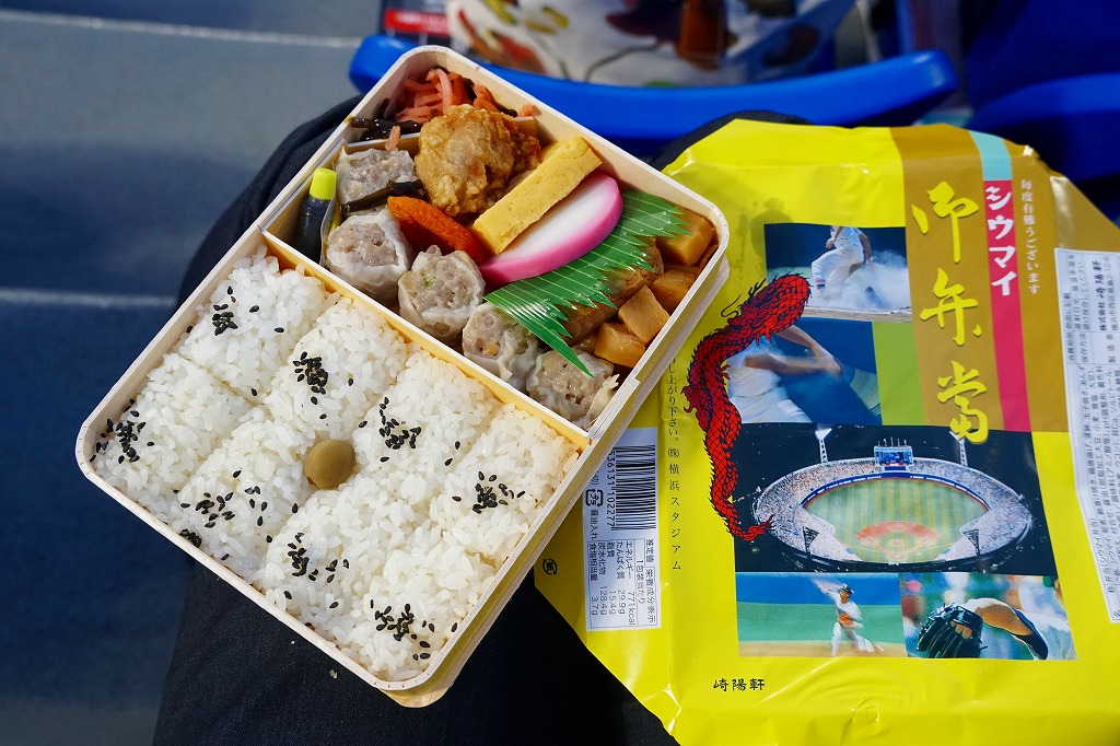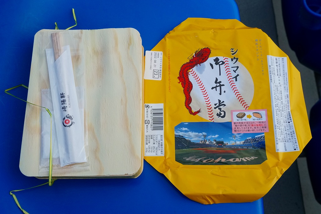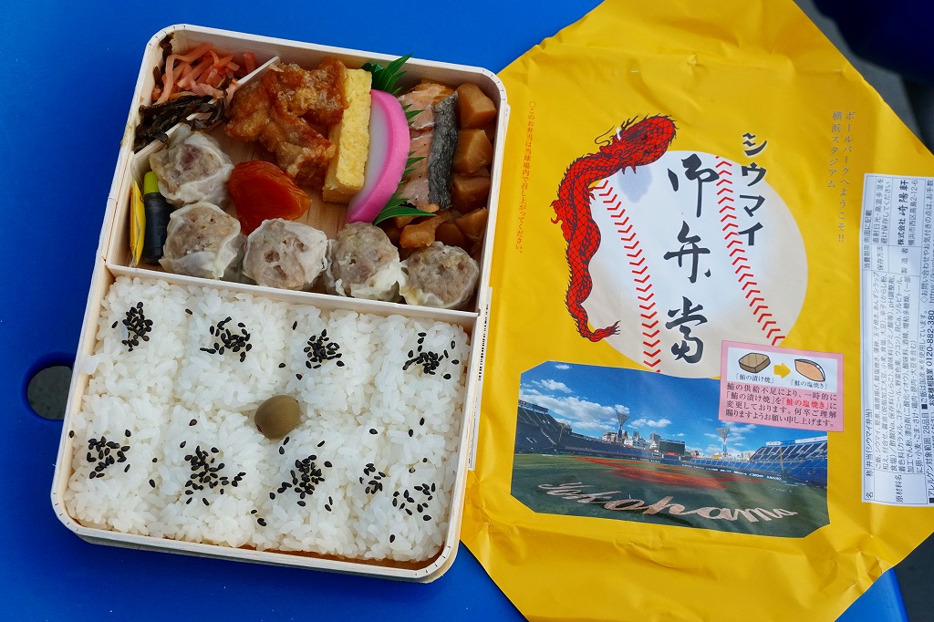 横浜スタジアムでプロ野球の試合が開催される際に、球場内でのみ販売されるお弁当。横浜駅弁のシウマイ弁当との違いは、掛紙のデザインが異なることと、価格が100円高いこと。容器と中身は、まったく同じ。ということで価格は駅売りのシウマイ弁当と連動し、2017年時点で930円、2019年時点で960円。