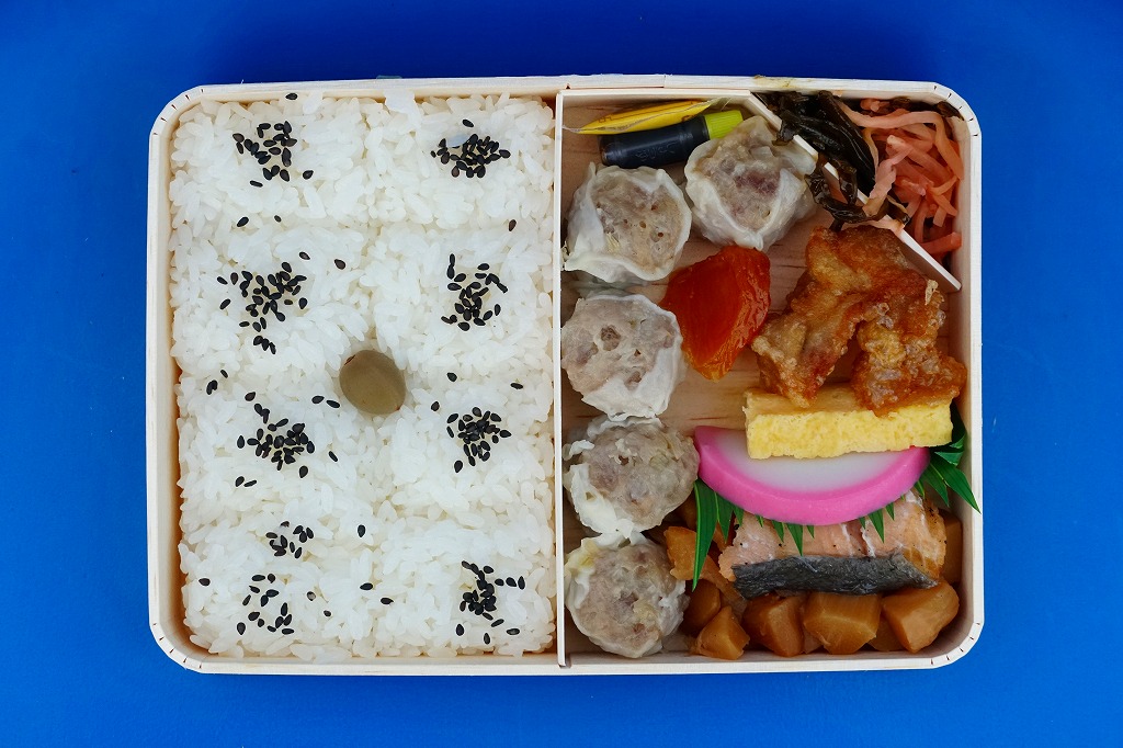 2022(令和4)年8月17日から23日まで販売。普段の駅弁「シウマイ弁当」について、材料の供給不足のためこの1週間だけ、中身から鮪の漬け焼をなくし、鮭の塩焼きを加えた。その事実がイラスト付きで掛紙に記され、シールを貼るなどでなく刷り直して使われた。たしかによく見ると、中身のマグロがサケに替わっている。小粒の鮭塩焼はまるでタイか銀ムツのような脂と弾力を持ち、駅弁のサケでは出色の出来映えだと感じたが、ネット上の感想ではあの固くて醤油辛いマグロのほうがよいという意見が多かったように見えた。たしかに飯のおかずや酒のつまみには、サケよりマグロが向いていると思う。