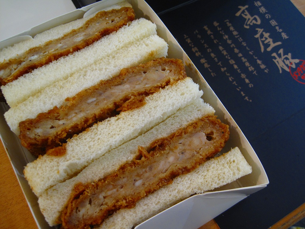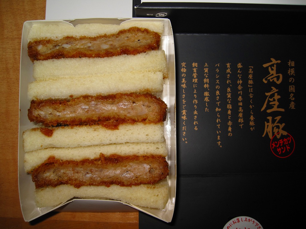 2009年かそれ以前から海老名サービスエリアで売られる商品。つや消しな黒い紙箱に、さらにボール紙製トレーに詰められてビニールで密封されたメンチカツサンドが3切れ収まる。味はちょっと脂っぽいかもしれないが普通のメンチカツサンド。色違いの箱に詰めて羽田空港でも売られる模様。