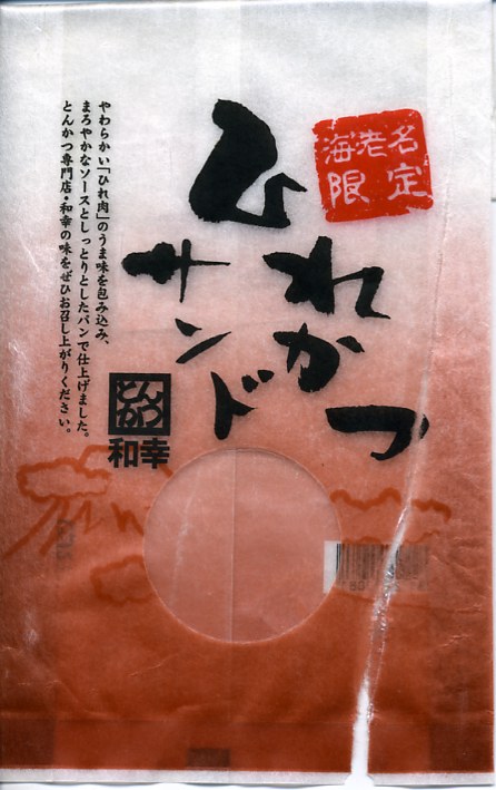 商業施設のレストランフロアや地下街などでおなじみのブランドによるカツサンド。写真のとおりヒレカツのみが入ったサンドイッチが4切れ、透明なプラ製トレーに収まり、中身が見えるプラ製の袋に収まる。その袋には「海老名限定」と記されるが、中身は羽田空港でもデパ地下でも食べられる味であり、海老名限定なのは袋だけだろう。調製元は不詳。販売者としてサービスエリアの運営会社の名が食品表示ラベルに記される。