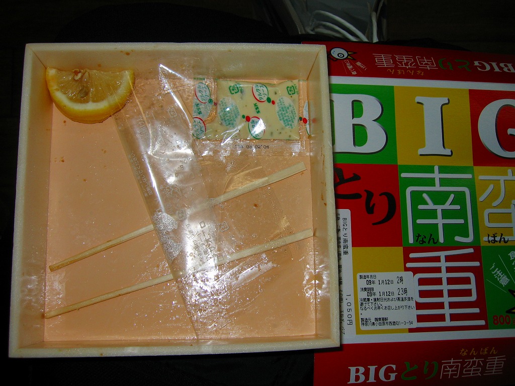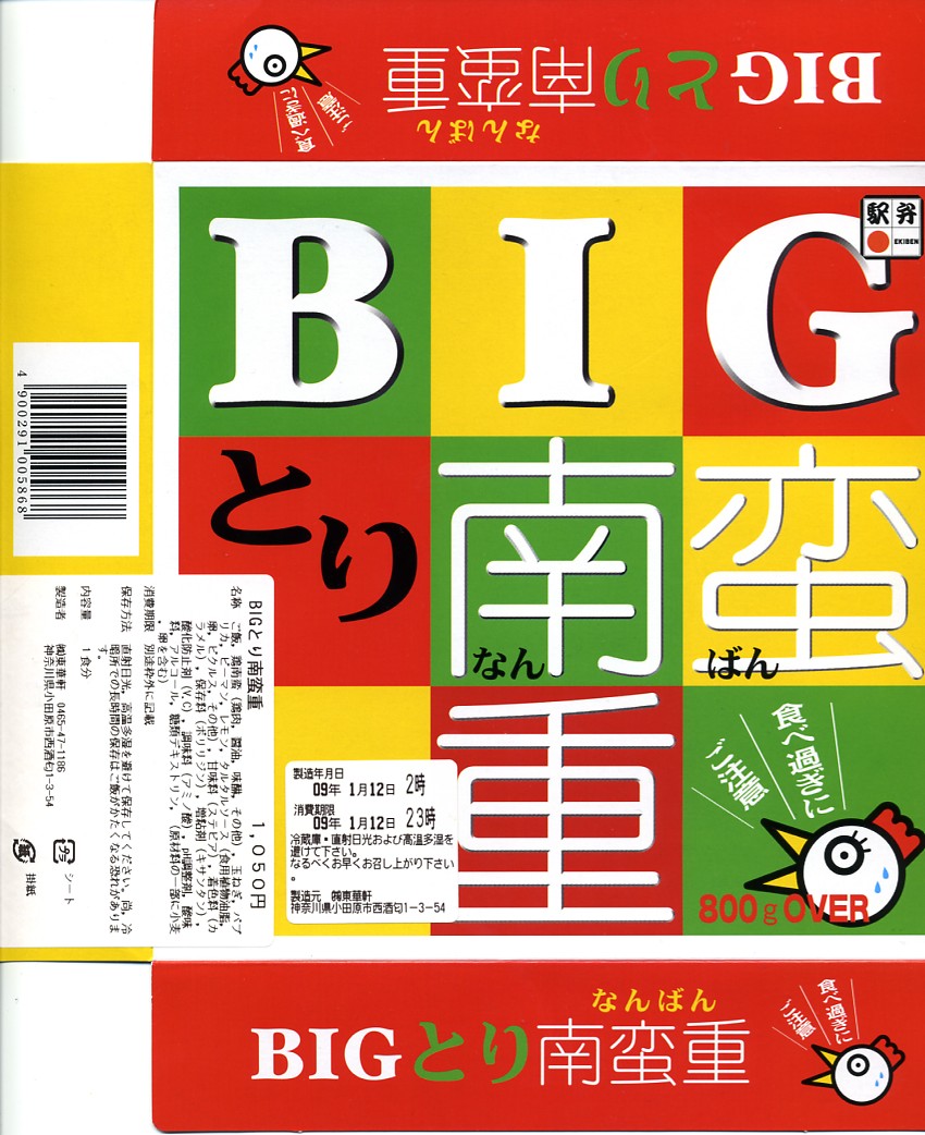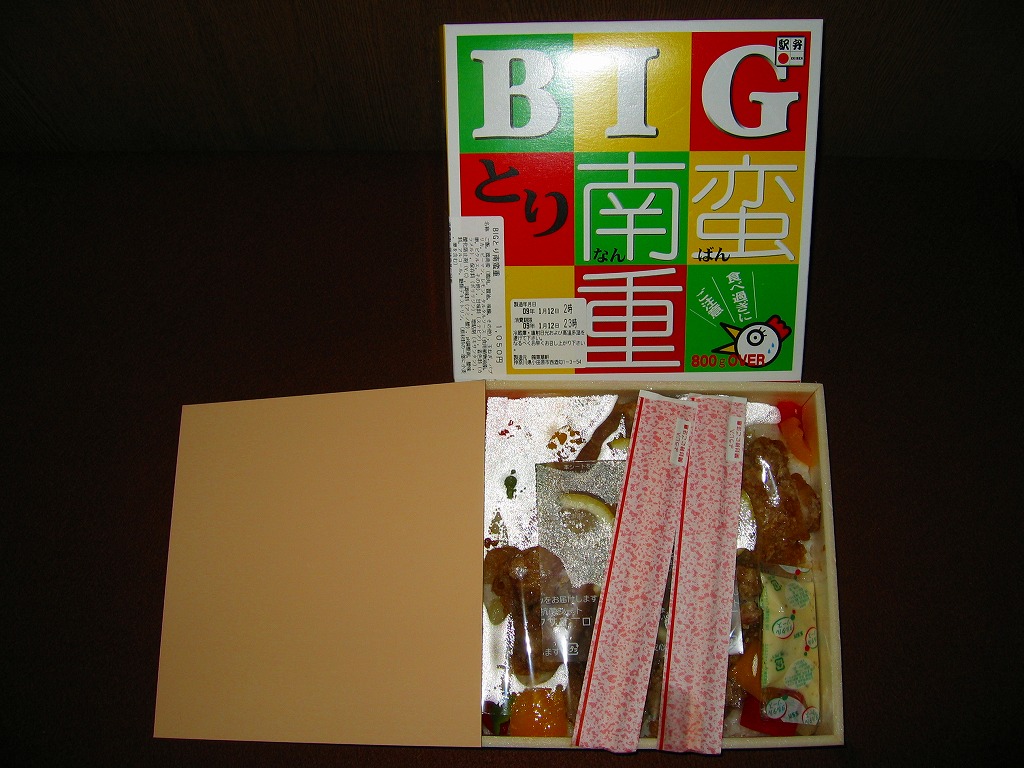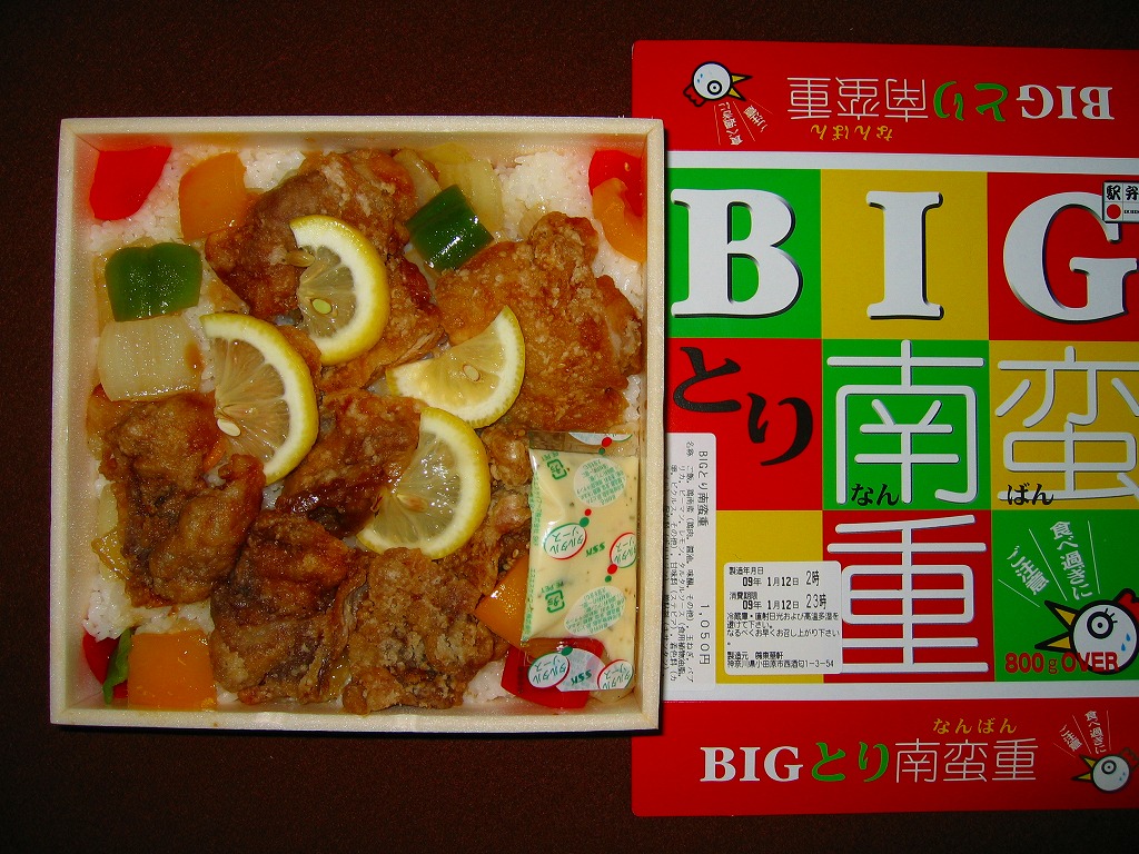 見た目には単なるホカ弁。注目すべきはその分量で、「BIG」を名乗り「食べ過ぎにご注意」と警告するにふさわしく、19センチ四方の容器に詰まる中身の総重量は800グラム以上になるという。そんなパワフルなコンセプトに、油っぽいけれど意外に柔らかくてうまい鶏南蛮が、分量にしてはお手ごろな価格とともに、若者男性の心をつかんでいる。非常に個性的で面白い、素晴らしきB級グルメ。翌年の京王百貨店の駅弁大会でも見たと思う。