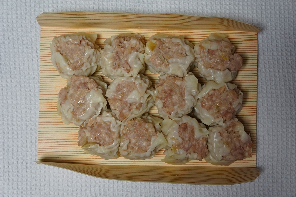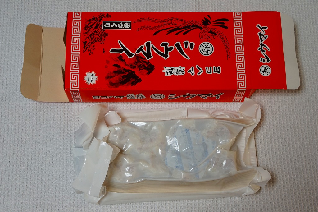 ボール紙のトレーに6個の、横浜駅の崎陽軒にたとえれば特製サイズの焼売が6個、ボール紙のトレーごと真空パックされて収まっていた。豚とその脂の臭みが強く、どうも常温ではなく加熱しないとうまくない商品のよう。