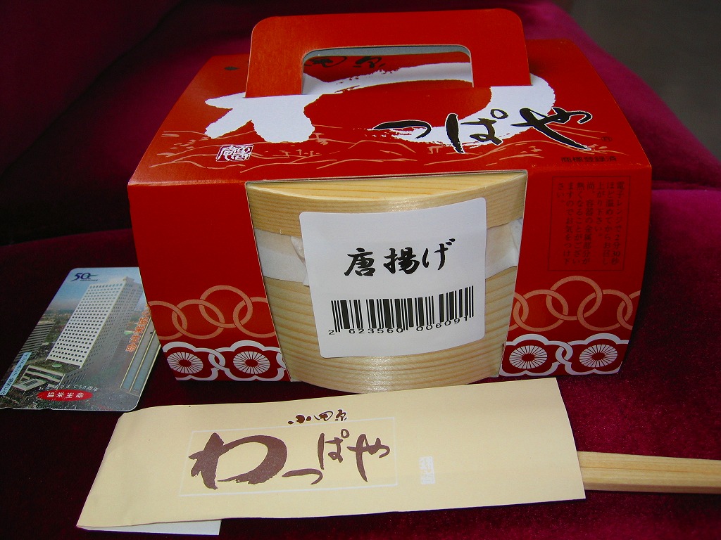 購入時に加温を勧められたが、駅弁としての収蔵を考えて断った。しかし常温で食べると鶏唐揚の脂と油と醤油か塩の刺激味が口と胃に物凄く重く、暖めればそれが少しは軽くなるのだろう、これは駅弁ではない感じ。