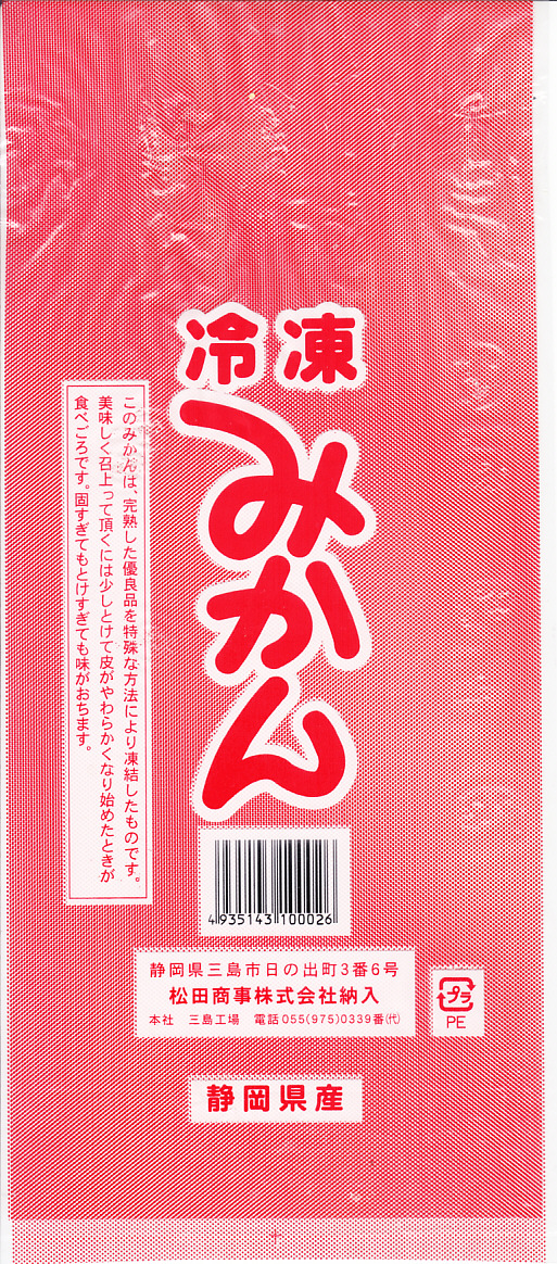 冷凍みかんの発祥地は、現在のJR小田原駅だという。1955(昭和30)年または1956(昭和31)年に、冷凍食品会社と小田原のみかん業者が商品化し、鉄道弘済会がここを始めに全国の国鉄の駅で販売することで普及した。高度経済成長期の昭和40年代にはよく売れたが、その後はアイスクリームや冷房の普及で廃れたという。東海道本線の主要駅のキヨスクには必ず備え付けられていたと思う、もっぱら冷凍みかんを販売した冷蔵什器も、20世紀中に見なくなった。