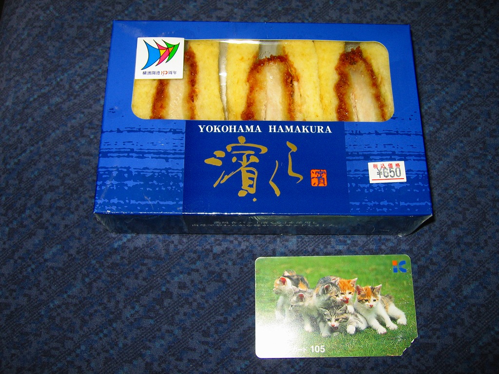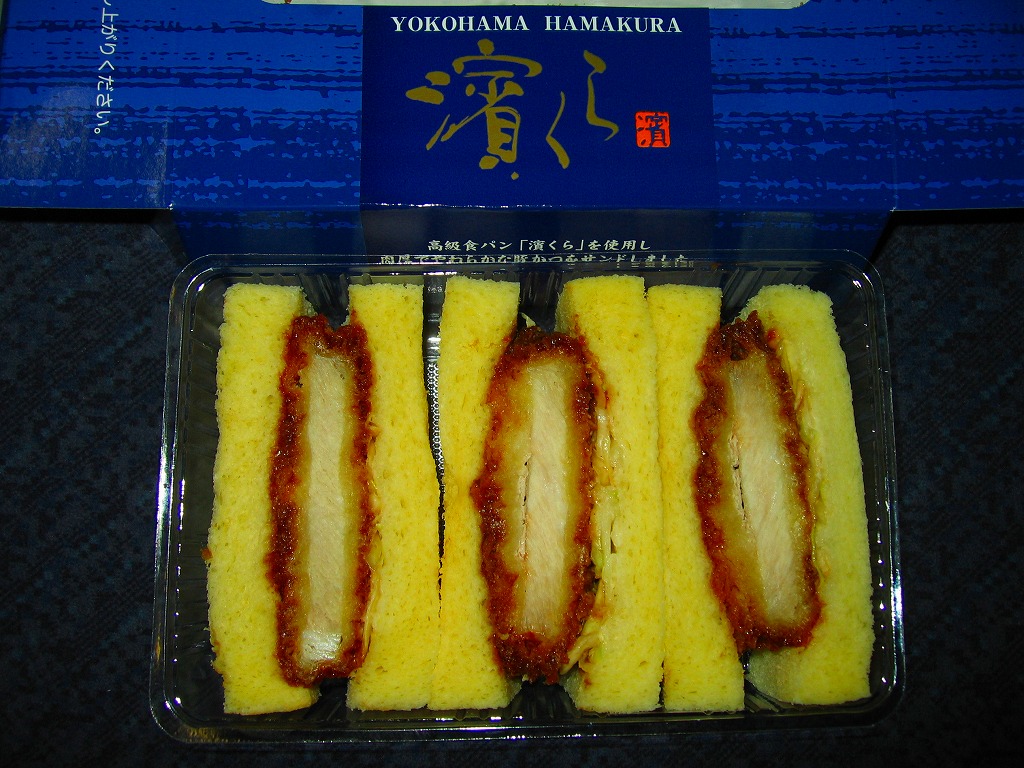 「濱くら」とは、製パン最大手の山崎製パンが神奈川県内限定で販売する、1斤が350円もする高級食パン。「厳選された小麦粉とバター・卵を贅沢に使用し、ふんわりソフトに焼き上げ」たそうな。カツサンドにすると具の味に負けてしまうが、そう言われると確かに、潰れたり乾燥していることも少なくないカツサンドのパンが、これはふんわりしっかりしていたような。横浜開港150周年の記念商品ということで、そのロゴマークが貼られている。横浜の駅構内コンビニでは見たことがない。このシリーズは2009年頃までの販売である模様。