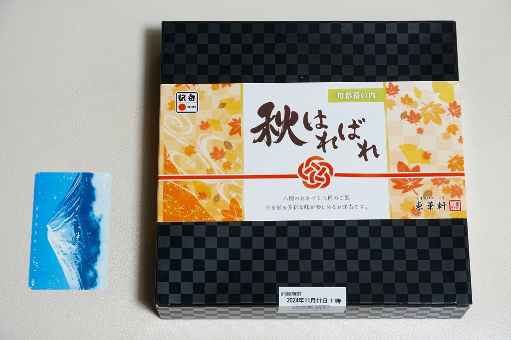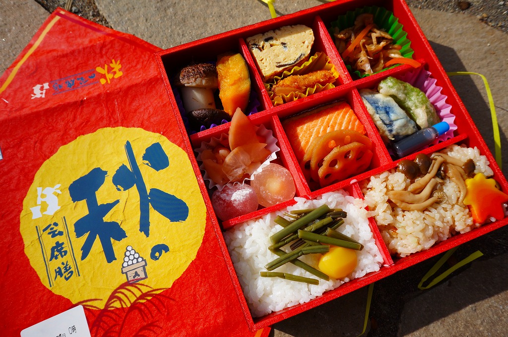 2024(令和6)年10月1日から11月末まで、小田原駅や熱海駅に東京駅などで販売。同月のJR東日本の駅弁キャンペーン「駅弁味の陣2024」にエントリー。紅葉の掛紙を締めた市松模様の市販容器の9区画に、きのこご飯と日の丸御飯とふりかけ茶飯で3種の御飯と、さつまいも揚げ、銀鮭の塩焼きときんぴらごぼう、とりそぼろとゆず大根漬、鶏つくねと玉子焼、いかとカボチャの天ぷらにれんこんの磯辺揚げ、煮物と切り干し大根、きんぴられんこんの6区画。とりそぼろで小田原駅弁だとわかる、秋のおつまみ弁当。
