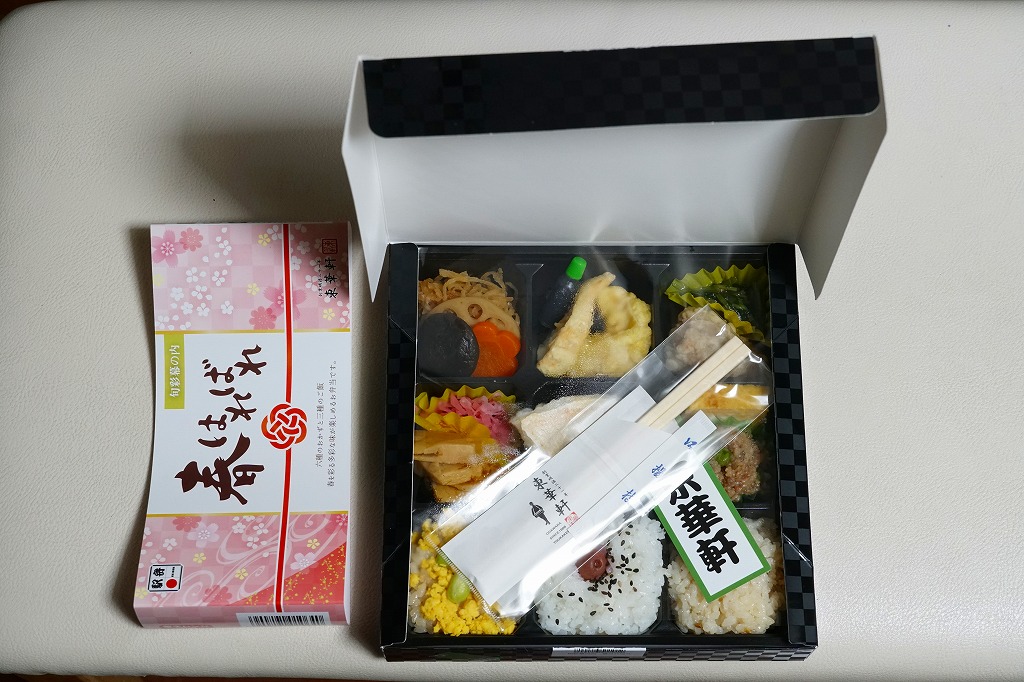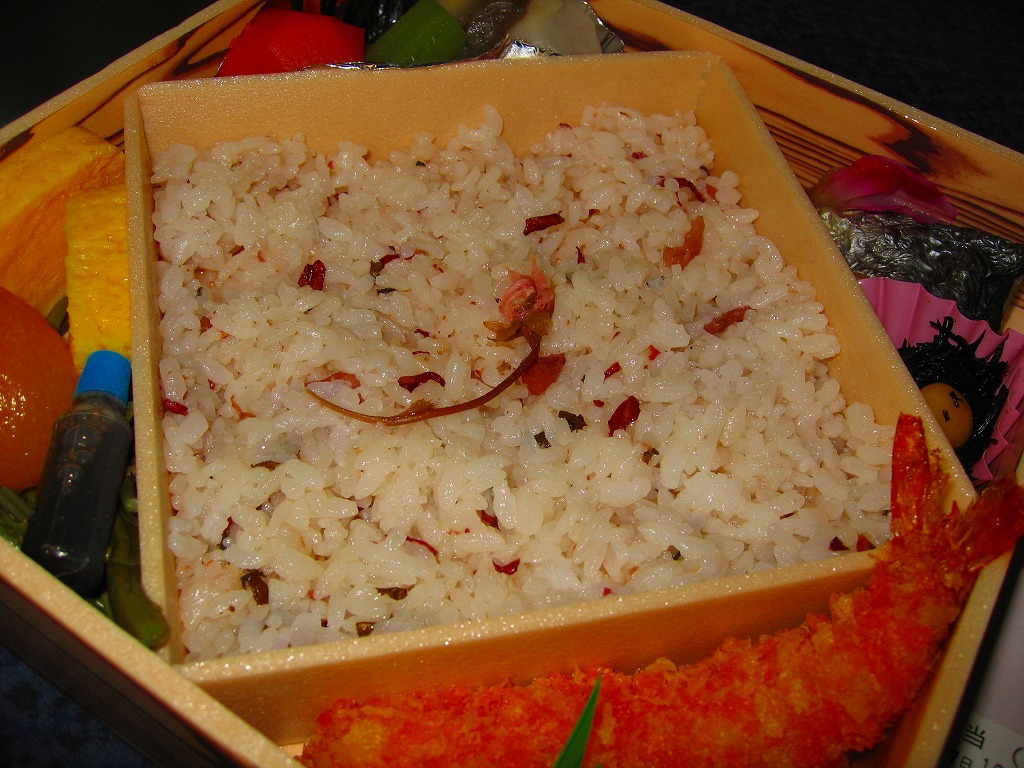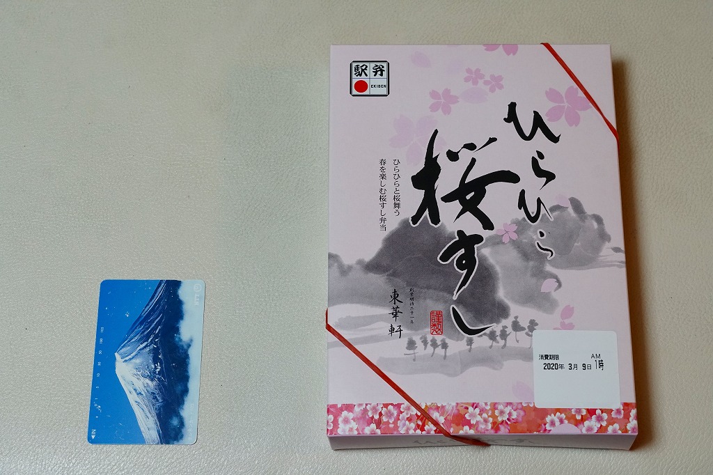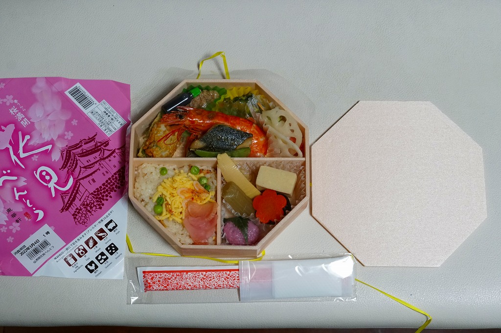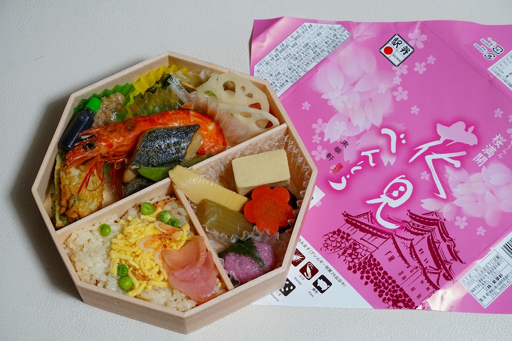 小田原駅の春限定の駅弁。正方形の容器に桜色の掛紙をかけてピンク色の紙ひもでしばる、外見だけで春いっぱいの駅弁。中身はタケノコと油揚げの混ぜ御飯にサワラ・アジフライ・里芋などの煮物・菜の花和えなどと、桜色の衣を付けた海老団子。おかずに濃い味のものが少なく御飯が余りそうに見えて、飯だけで食が進み逆におかずを余してしまった。このシリーズも現存しないと思う。