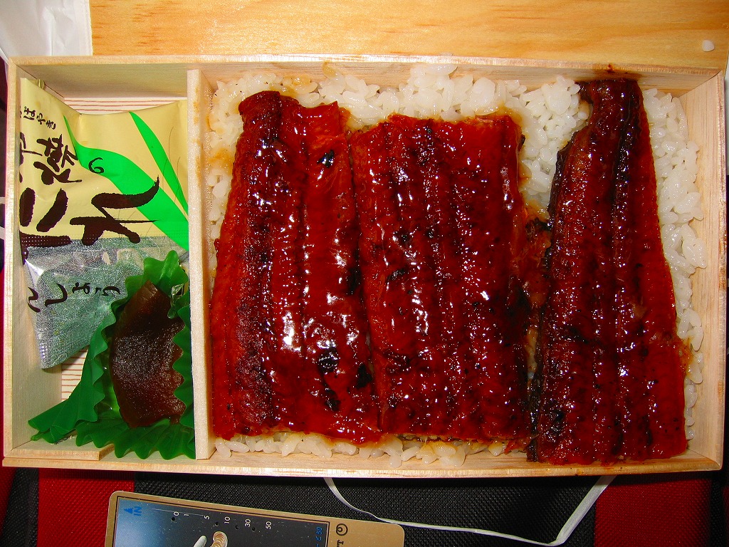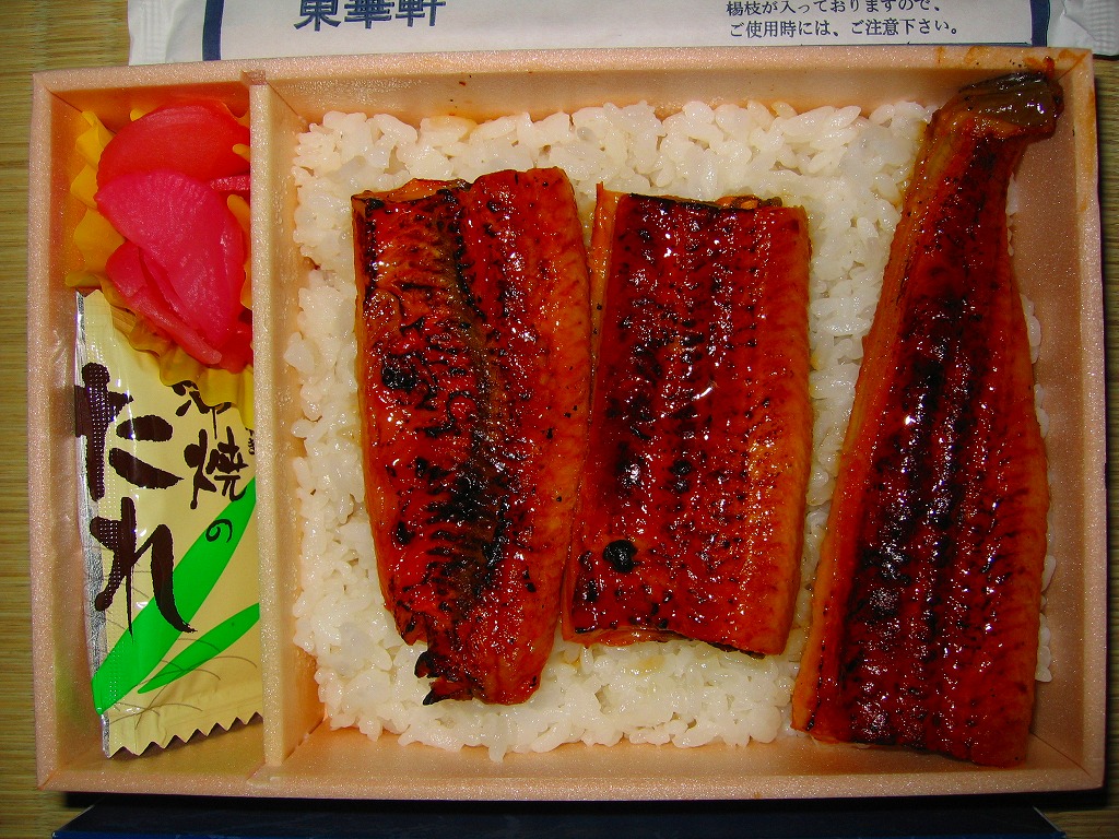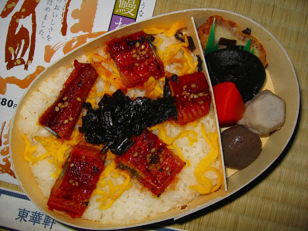 小田原駅弁のうなぎ弁当は現地では、6月から7月までの間を除き買えたためしがなく、しかしこの時点で東京駅の駅弁売店「駅弁屋旨囲門」では通年で販売する定番の商品になっている。中身は直球勝負、しかし今回の鰻は臭かった。資源の枯渇が深刻化する中、国産を偏重し過ぎるのも良くないのかと。なお、小田原駅のウナギ駅弁は、2015年時点で「うな重」(2,310円)になっている。