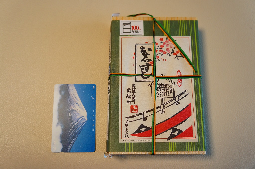 2011(平成23)年10月8日から10日までに東京駅で開催された「第14回東日本縦断駅弁大会」で販売されたお弁当で、昔の大船駅弁を復刻したもの。といっても復刻は掛紙だけであり、容器や中身や価格は現行の駅弁「特上鯵の押寿し」と同じである。1928(昭和3)年当時の掛紙で復刻したようだが、すべて手書きの絵柄は見るからにデザインのかけらもなく、カラーコピーの質感といい、なぜ今回これを持ち出したのか不思議に思った。