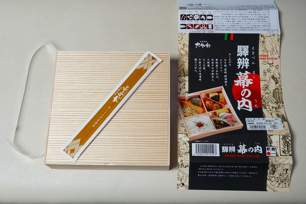 2016(平成28)年の夏までに、従前の「列車の幕の内弁当」を改称のうえ一部リニューアルか。幕の内駅弁として、日の丸御飯に焼鮭、かまぼこ、玉子焼、サトイモとタケノコとシイタケの煮物という基本と、マグロ唐揚、牛肉ごぼう煮、アサリ蒸し、シラスのごま油炒めとサクラエビという応用がある。幕の内駅弁としては、少量でコンパクトなつくりだと思う。2017年の5月頃に掛紙を中身の写真入りのものに変更、2018年にはこれを元に戻し、2019年1月に松花堂弁当タイプの「駅辨幕の内」(1,100円)へリニューアルした模様。