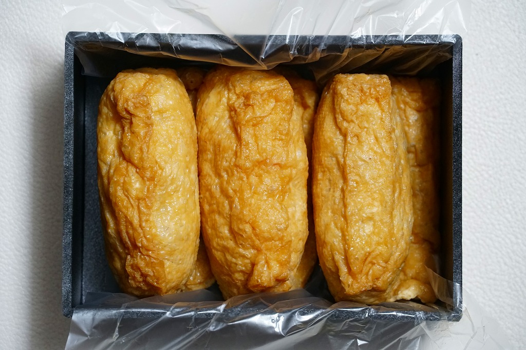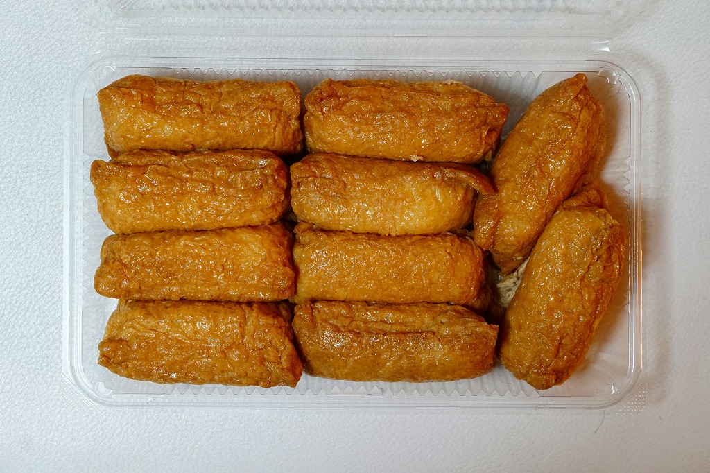 この姿と名前では、2016(平成28)年までに発売か。大船軒の稲荷寿司の特売品。いつでも買えるものではなく、大船駅と逗子駅の改札外の店舗では目撃例が多い。助六寿司の駅弁などに入るおいなりさんが、10個も入って350円。お店では「選外品の為、いなりの皮が破れたものが入っております。」と掲示し販売するが、味が異なるものではなく、今回購入したものにそんな品は入っていなかった。駅弁でない市販品より格安で、とてもお得な奉仕品。2018年3月までは300円で、もっとお徳だった。価格は2020年の購入時で350円、2022年6月から380円。2023年4月に大船軒がJR東日本クロスステーションに吸収合併され、大船の調製所が廃止されたため、その2023年5月限りで終売。