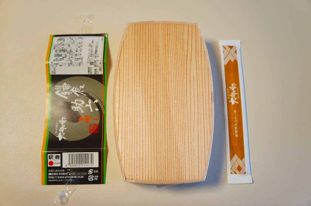 2015(平成27)年の秋までに発売。調製元は大船駅の駅弁屋であり、市販の時刻表などでは大船駅の駅弁としているが、実態はJR東日本の東京エリアや車内販売で売るための商品なのだろう、ネット上の収穫報告は新幹線の車内販売ばかりで、今回の購入箇所も大船駅と何ら関係のない中央線特急列車の車内である。